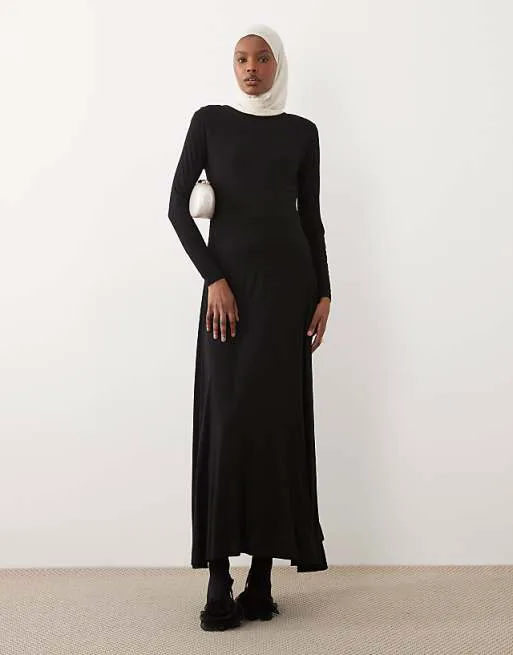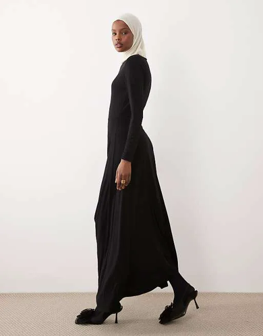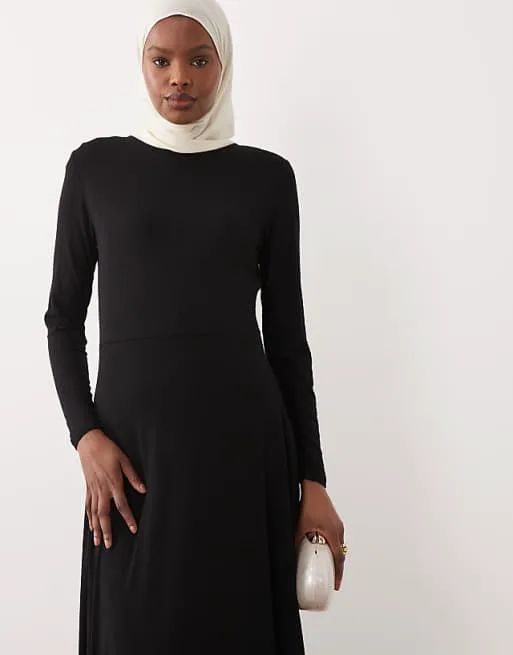 Представляем вашему вниманию элегантное черное платье, которое станет незаменимым элементом вашего гардероба. Это платье сочетает в себе классический стиль и современный комфорт, идеально подходя для различных мероприятий – от деловых встреч до вечерних выходов.