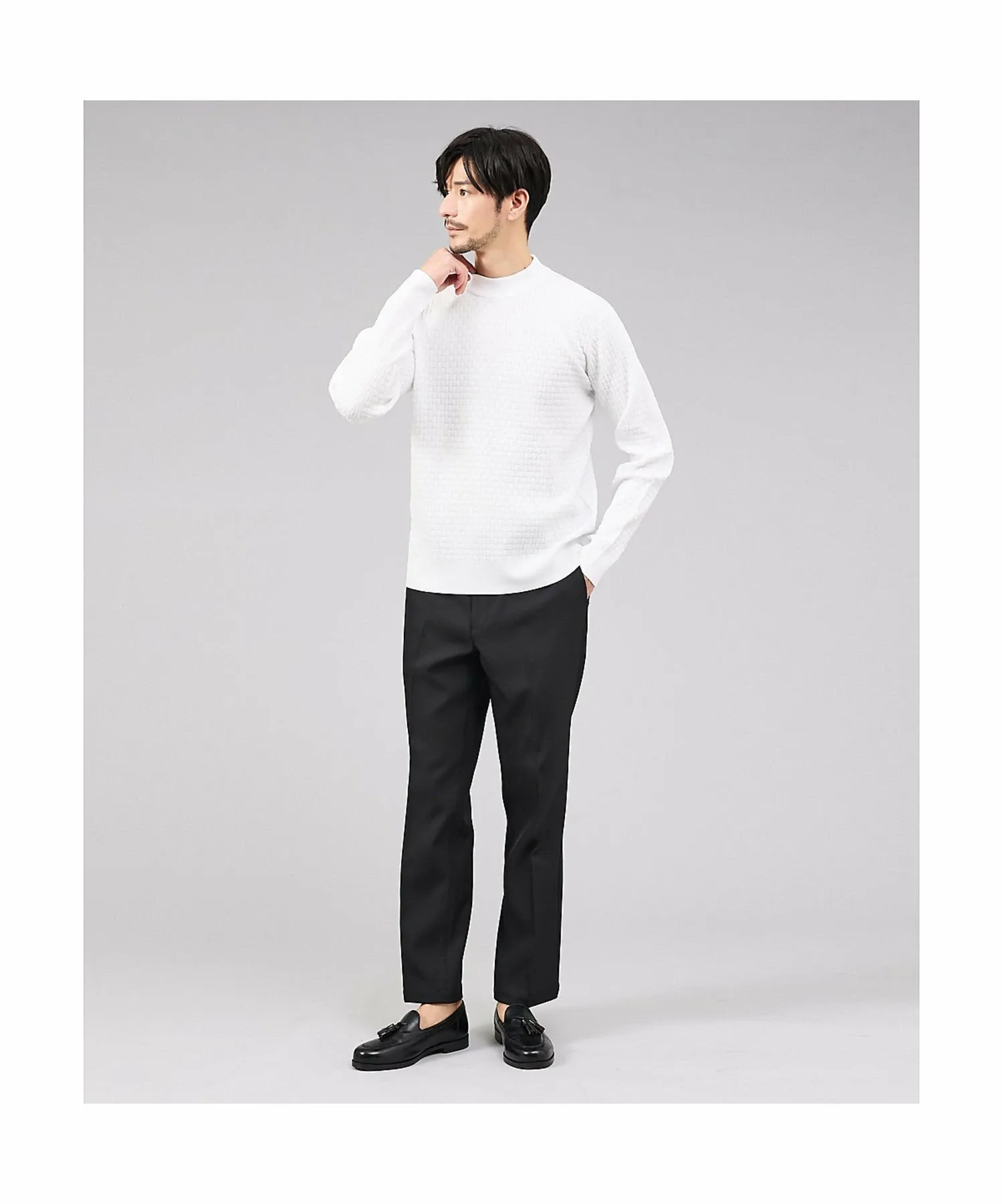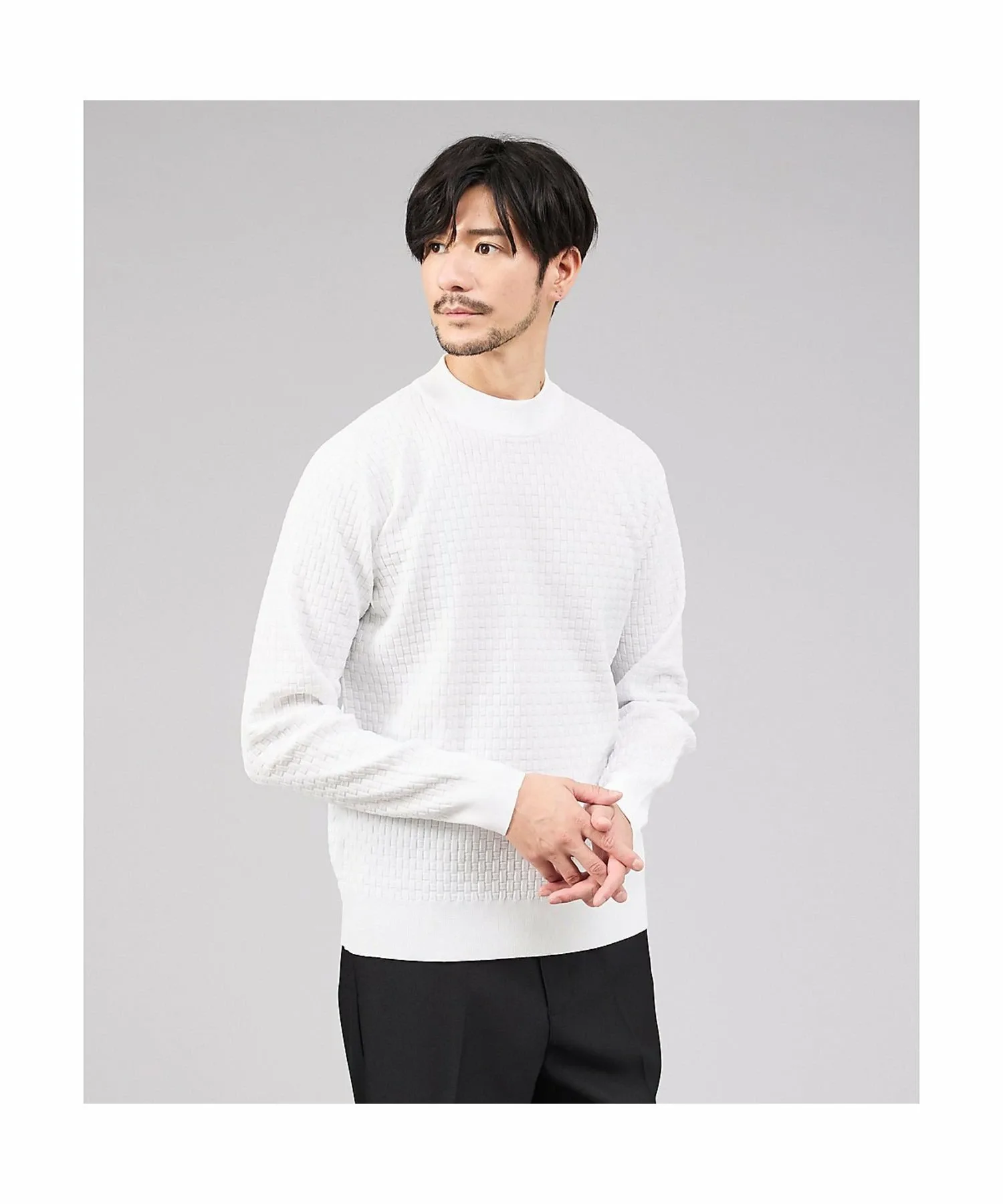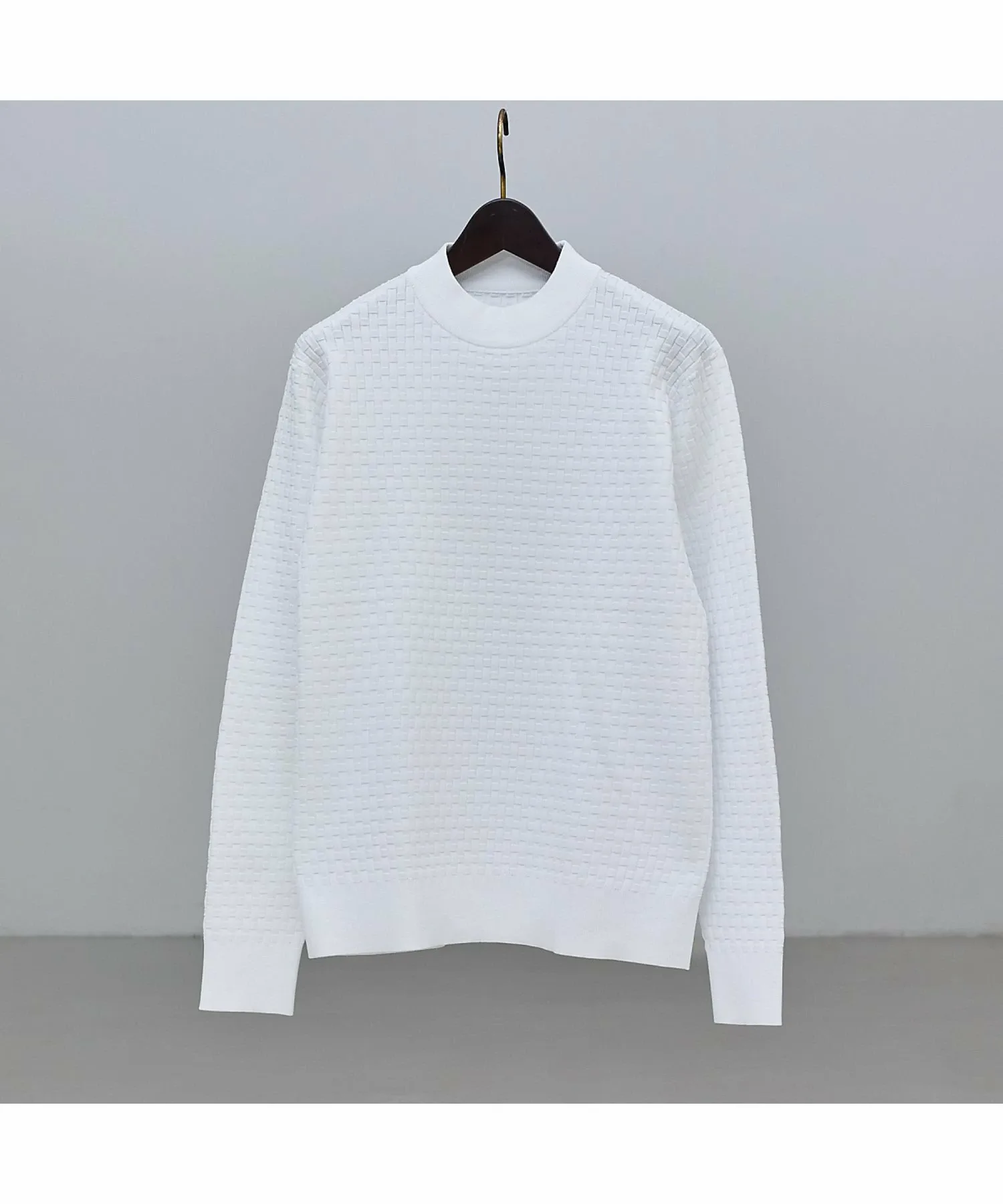 Вязаная рубашка с геометрическим узором, созданным неравномерной жаккардовой вязкой на ткани. Сдержанный, простой узор создает ощущение защищенности. Рубашку можно носить как самостоятельно, так и в качестве нижнего слоя под куртку или верхнюю одежду. При ношении под курткой она придает аккуратный вид шее и помогает предотвратить загрязнение воротника.