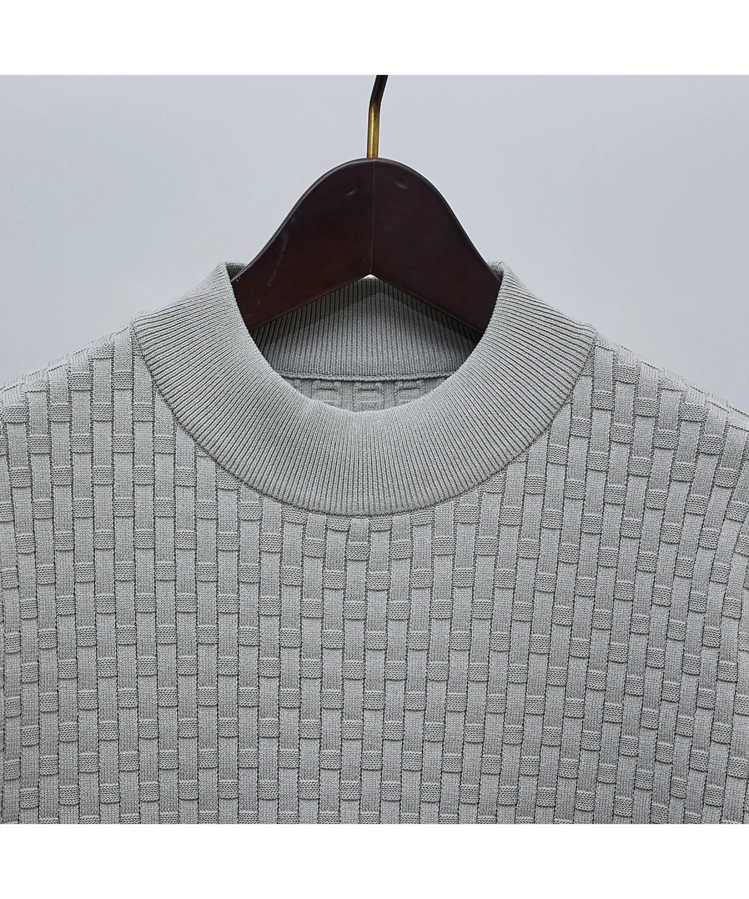 Вязаная рубашка с геометрическим узором, созданным неравномерной жаккардовой вязкой на ткани. Сдержанный, простой узор создает ощущение защищенности. Рубашку можно носить как самостоятельно, так и в качестве нижнего слоя под куртку или верхнюю одежду. При ношении под курткой она придает аккуратный вид шее и помогает предотвратить загрязнение воротника.