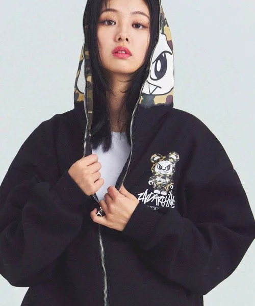 Эта толстовка на молнии имеет молнию спереди, которая меняет свой вид в зависимости от того, открыта она или закрыта. Доступна в белом или черном цвете, она проста, но логотип бренда и мотивы создают уличный стиль. Размер F имеет обхват груди 63,5 см, длину 65 см, длину рукава 60,5 см и ширину плеч 62 см, что придает ей слегка облегающий вид, но при этом делает ее эффектной. Она достаточно универсальна, чтобы носить ее с широким спектром стилей, от повседневного до более современного.
