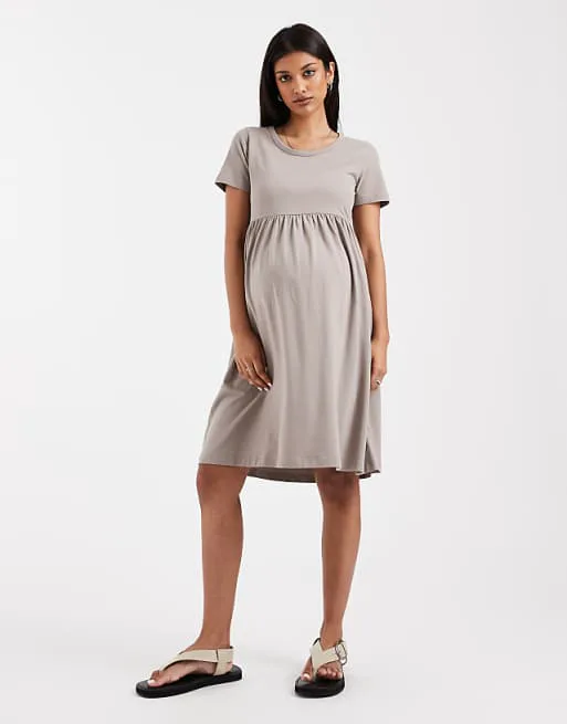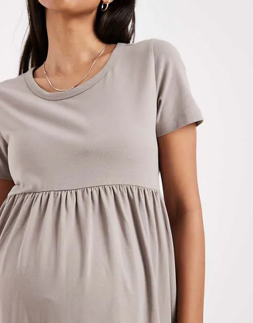Представляем вашему вниманию элегантное бежевое платье-футболку, разработанное специально для будущих мам. Это платье сочетает в себе комфорт и стиль, обеспечивая максимальное удобство на протяжении всей беременности. Его простой, но изысканный дизайн делает его универсальным предметом гардероба, подходящим для различных случаев.