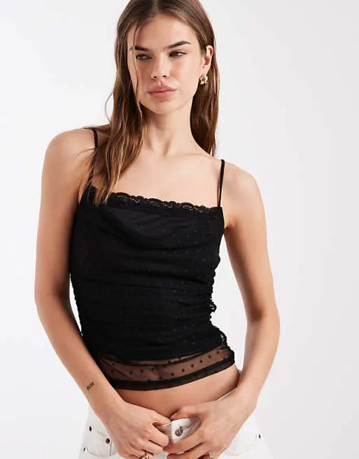 Топ имеет приталенный крой, который выгодно подчеркивает фигуру, создавая привлекательный силуэт. Фиксированные бретели обеспечивают комфортную посадку и надежную поддержку, позволяя вам чувствовать себя уверенно в любой ситуации. Дополнительным элементом декора является кружевная отделка, которая добавляет нотку романтичности и женственности, делая этот топ по-настоящему особенным.