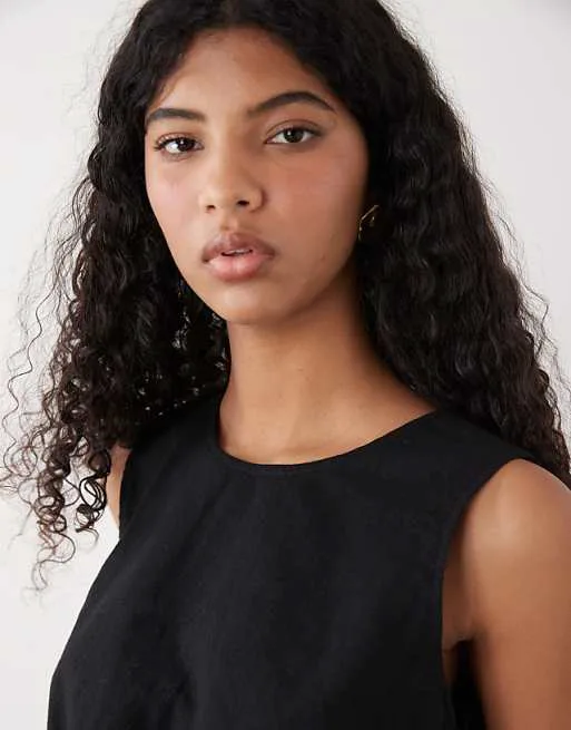 Представляем вашему вниманию стильный льняной топ от Monki, который станет прекрасным дополнением к вашему летнему гардеробу. Этот топ сочетает в себе комфорт натуральных материалов и современный дизайн, предлагая идеальное решение для создания как повседневных, так и более нарядных образов.