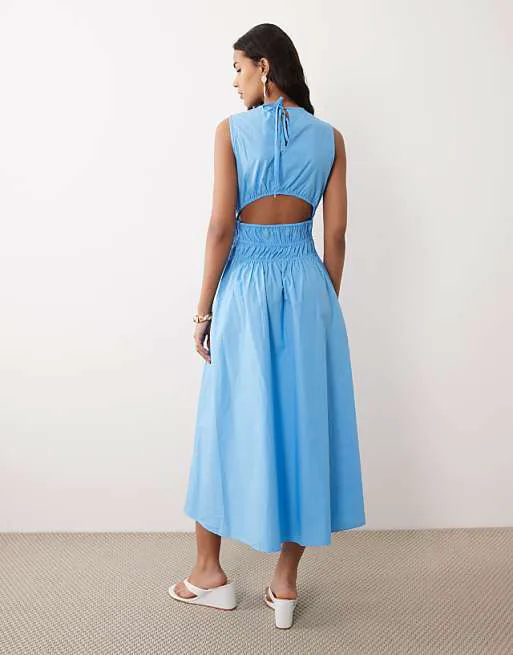 Дизайн платья продуман до мелочей. Круглый вырез горловины подчеркивает изящность шеи, а декоративные сборки добавляют образу легкость и воздушность. Вырез на спинке придает платью нотку кокетства, а завязка, расположенная сзади в виде замочной скважины, служит изысканным акцентом. Длина миди делает платье универсальным, подходящим как для повседневной носки, так и для особых случаев.