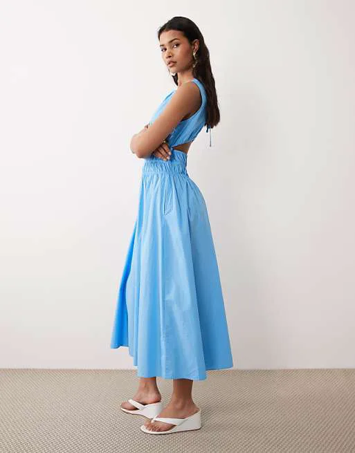 Представляем вашему вниманию синее платье миди Carrie от бренда Nothing's Child. Это воплощение элегантности и женственности, созданное для тех, кто ценит комфорт и стиль в каждой детали. Платье выполнено из ткани полотняного плетения, обеспечивающей приятные тактильные ощущения и долговечность изделия.