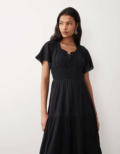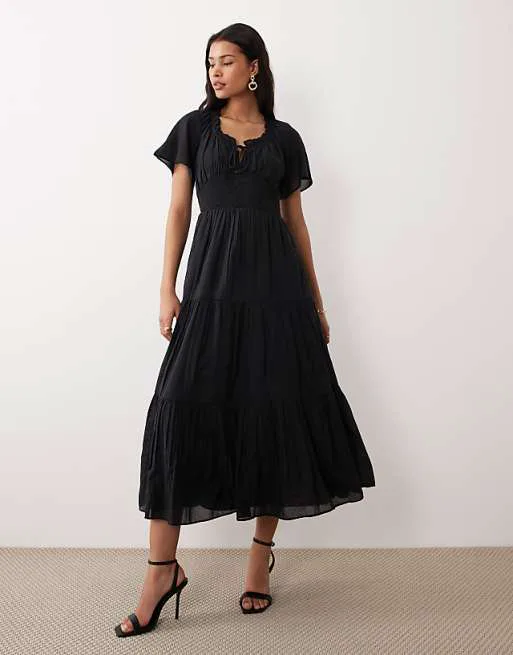 Представляем вашему вниманию изысканное черное платье миди Caliope от бренда Nothing's Child. Это воплощение элегантности и утонченности, которое станет незаменимым элементом вашего гардероба. Платье создано для тех, кто ценит стиль и комфорт в каждой детали.