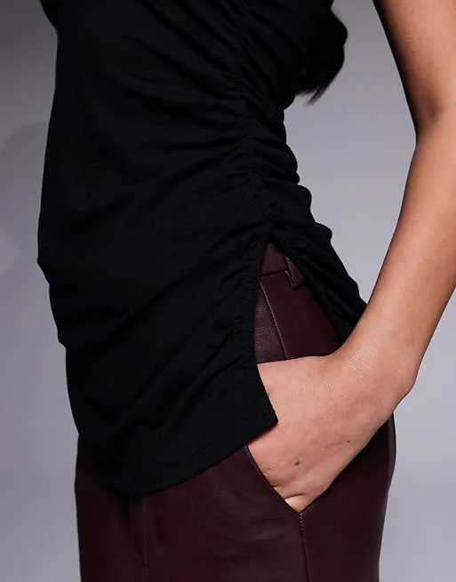 Топ выполнен из мягкого и эластичного трикотажа джерси, который обеспечивает комфорт при носке и приятные тактильные ощущения. Материал хорошо тянется, не сковывает движения и сохраняет форму даже после многократных стирок.