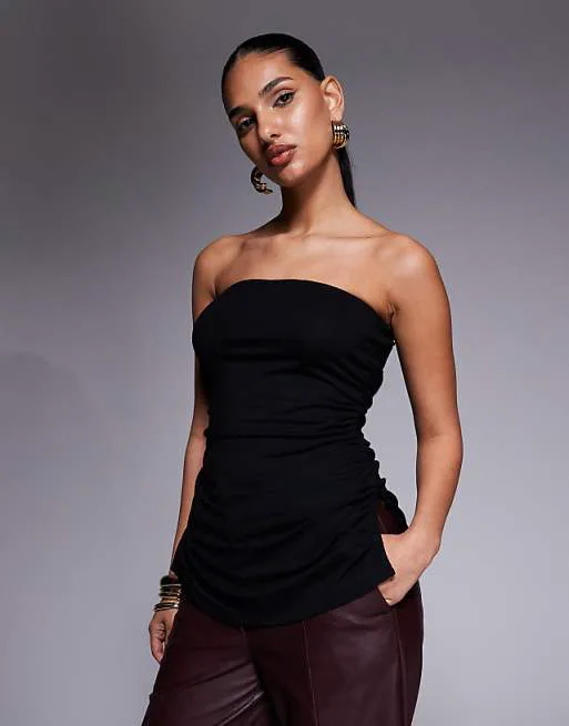Этот топ-бандо станет отличным выбором для создания как повседневных, так и вечерних образов. Его можно сочетать с юбками, брюками, джинсами или шортами, дополняя образ различными аксессуарами.
