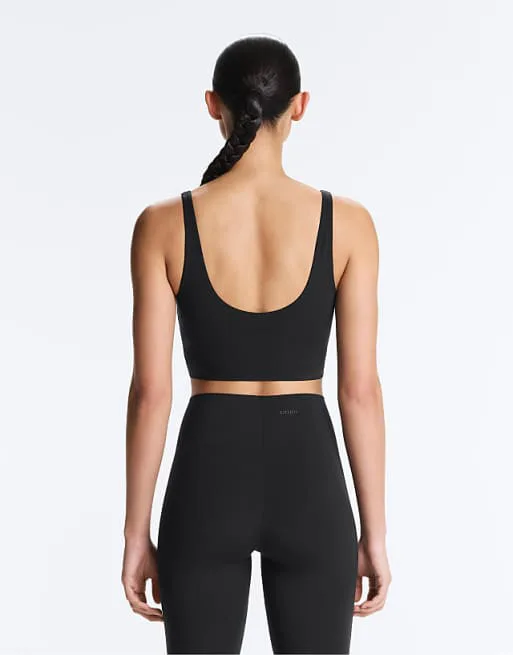 Представляем вашему вниманию черную майку-кроссовер от OYSHO из коллекции Light touch. Эта майка сочетает в себе лаконичный дизайн и комфорт, что делает ее универсальным элементом гардероба.