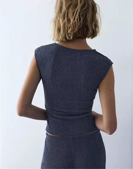 Представляем вашему вниманию стильный темно-синий топ, который станет прекрасным дополнением к вашему гардеробу. Этот топ сочетает в себе элегантность и комфорт, благодаря чему идеально подходит как для повседневной носки, так и для особых случаев.