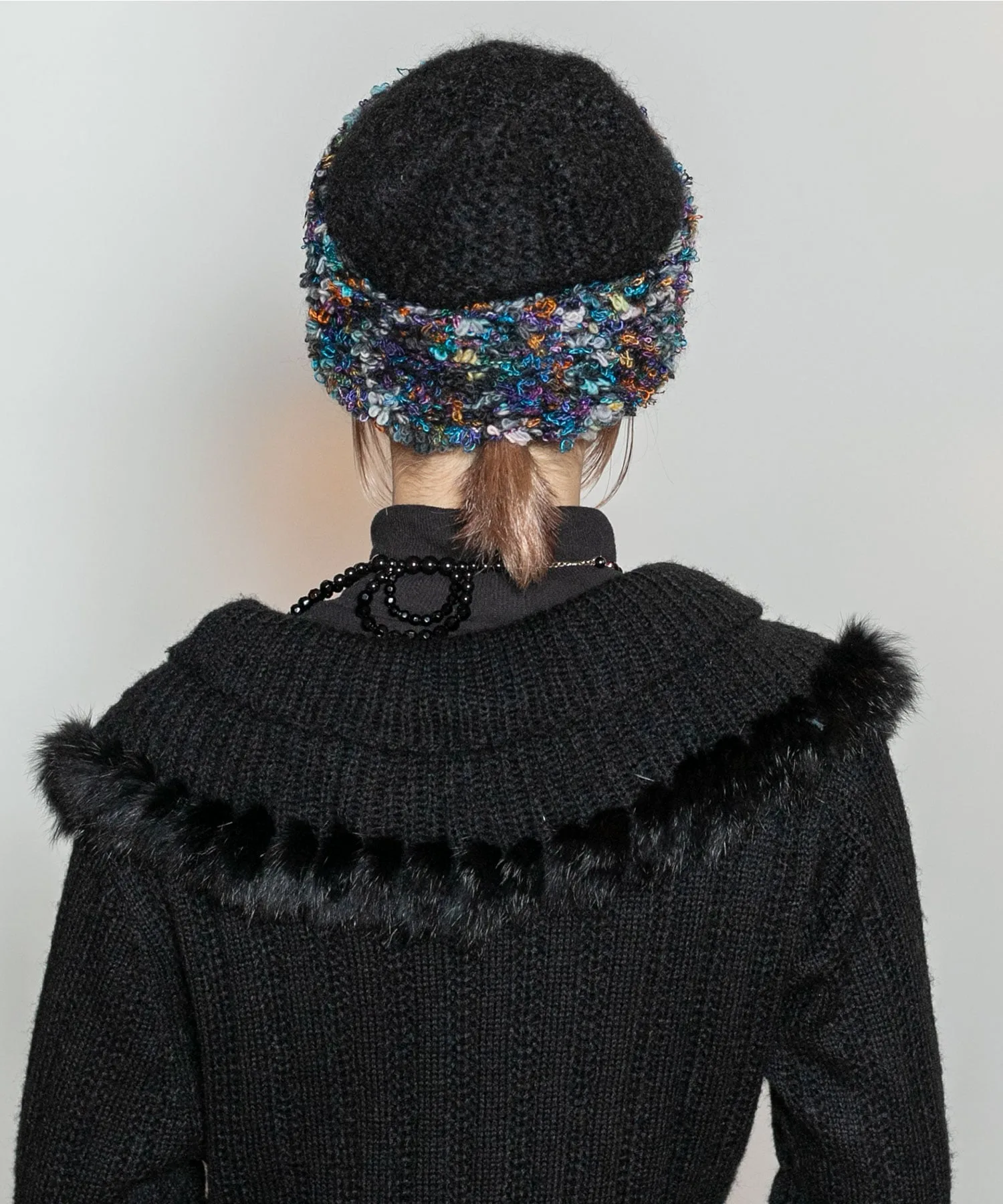 Благодаря использованию большого количества цветной пряжи в складках, дизайн придает головному убору нотку гламура. Яркий аксессуар, который дополнит ваш образ.