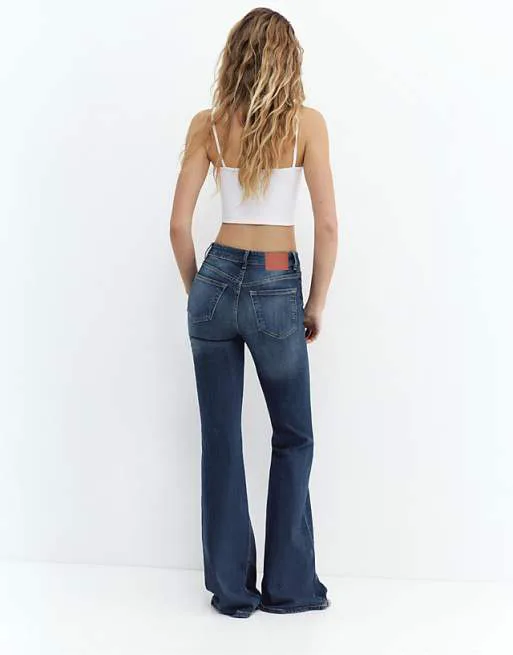 Особенностью этой модели является расклешенный крой от колена, который визуально удлиняет ноги и придает образу женственность. Высокая посадка подчеркивает талию, создавая привлекательный силуэт. Джинсы идеально подойдут для создания как повседневных, так и более формальных образов. Сочетайте их с блузками, рубашками, свитерами или футболками, дополняя образ обувью на каблуке или плоской подошве.