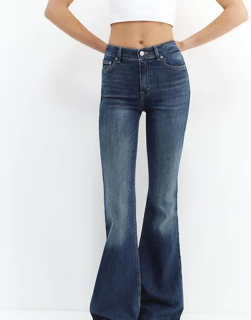 Представляем вашему вниманию стильные расклешенные джинсы от Pull&Bear в глубоком темно-синем оттенке. Эта модель сочетает в себе классический дизайн и современные тренды, идеально подходя для создания эффектных образов.