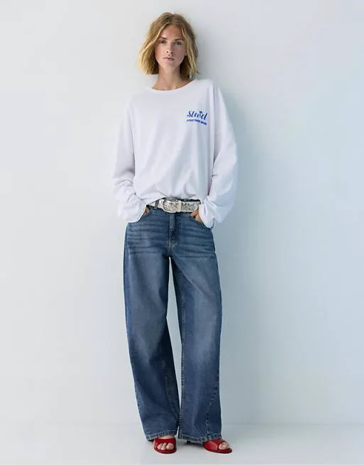Принт: Футболка украшена оригинальным принтом с текстом и графикой, который расположен на груди и спине. Этот принт добавляет изделию индивидуальность и делает его более выразительным. Дизайн принта может варьироваться, но всегда отражает актуальные тренды и стиль бренда Pull&Bear.