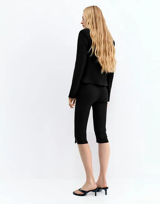Представляем вашему вниманию стильные черные капри от известного бренда Pull&Bear. Эти капри – идеальный выбор для создания как повседневных, так и более формальных образов. Благодаря своему лаконичному дизайну и универсальному черному цвету, они легко сочетаются с различными элементами гардероба.