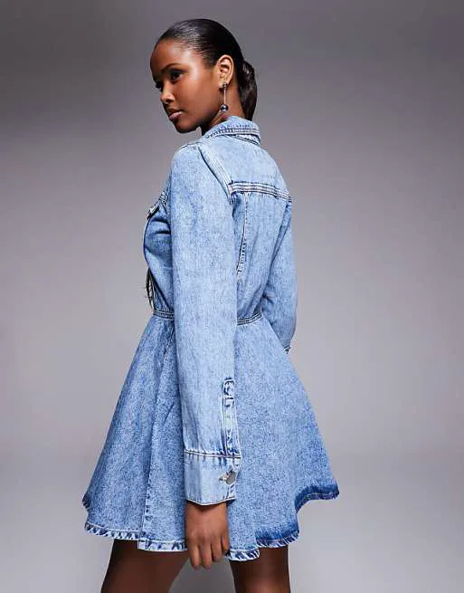 Это стильное джинсовое платье мини от River Island станет прекрасным дополнением к вашему гардеробу. Платье выполнено из качественного, плотного денима, который обеспечивает комфорт и долговечность. Светлый оттенок денима придает образу свежесть и легкость, делая его идеальным выбором для различных случаев.