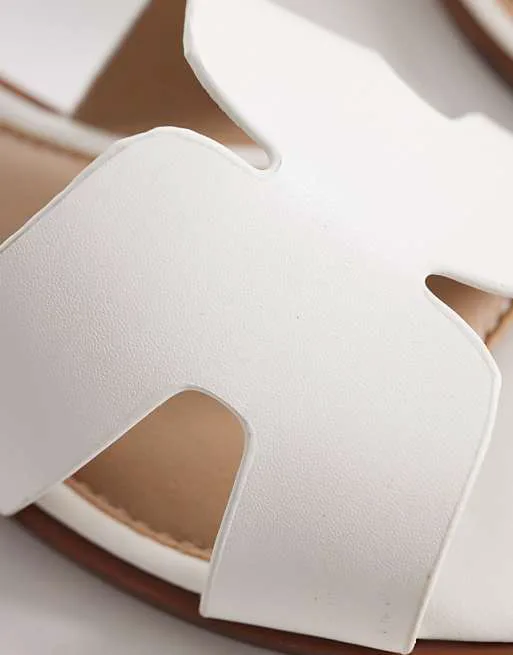 Открытый носок добавляет модели нотку женственности и позволяет вашим ногам дышать. Плоская подошва гарантирует комфорт при ходьбе на протяжении всего дня, позволяя вам чувствовать себя уверенно и комфортно в любой ситуации. Белый цвет сандалий делает их универсальными, позволяя сочетать с различными элементами гардероба, от легких летних платьев до повседневных джинсов.