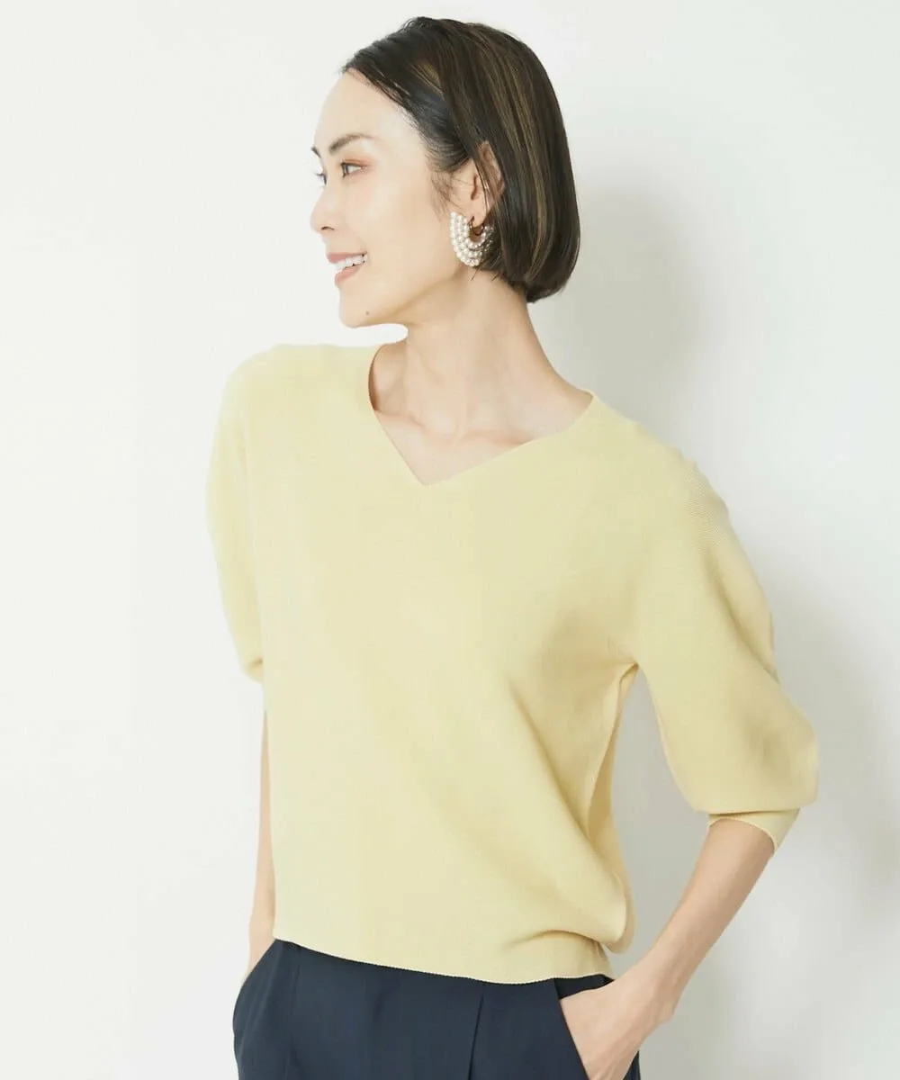 [Размеры Michel Klein Petite] Базовый трикотаж, который можно носить как самостоятельное повседневное изделие. Дизайн и крой: Этот пуловер имеет объемные рукава в области локтей, создающие эффектный силуэт. Неглубокий V-образный вырез подчеркивает декольте. Свободный крой делает его универсальным как для офиса, так и для отдыха. Вырез горловины немного уже, чем у модели прошлого года. Материал: Этот этичный материал представляет собой смесь плотного органического хлопка, не образующего катышков, и переработанного полиэстера. Он приятен на ощупь и эластичн. Изготовлен из бесшовного цельного изделия. Советы по стилю: Этот простой трикотаж доступен в широком ассортименте цветов. Мы рекомендуем сочетать его с яркими цветами, такими как черный и цветные брюки/юбки. Этот универсальный трикотаж легко сочетается с уже имеющимися у вас вещами.