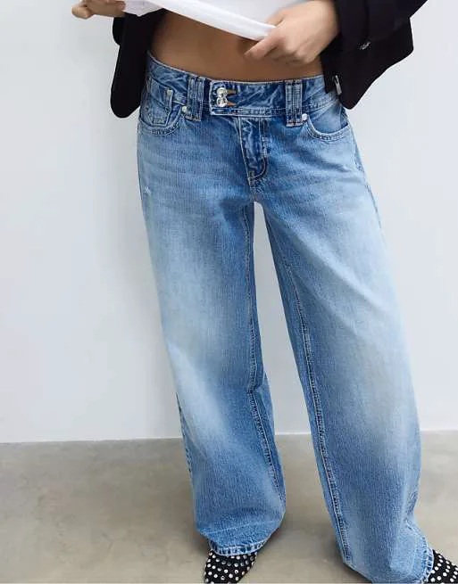 Представляем вашему вниманию джинсы от Stradivarius, которые станут основой вашего повседневного гардероба. Эти джинсы выполнены в классическом светло-голубом цвете, который легко сочетается с различными элементами одежды, позволяя создавать разнообразные образы.
