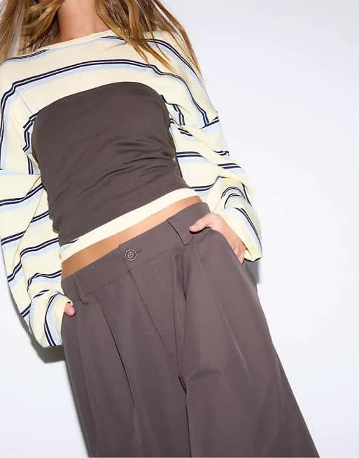 Представляем вашему вниманию стильные брюки от Stradivarius, которые станут отличным дополнением к вашему гардеробу. Модель выполнена в универсальном коричневом цвете, который легко сочетается с различными элементами одежды. Брюки отличаются элегантным дизайном и высоким качеством исполнения.