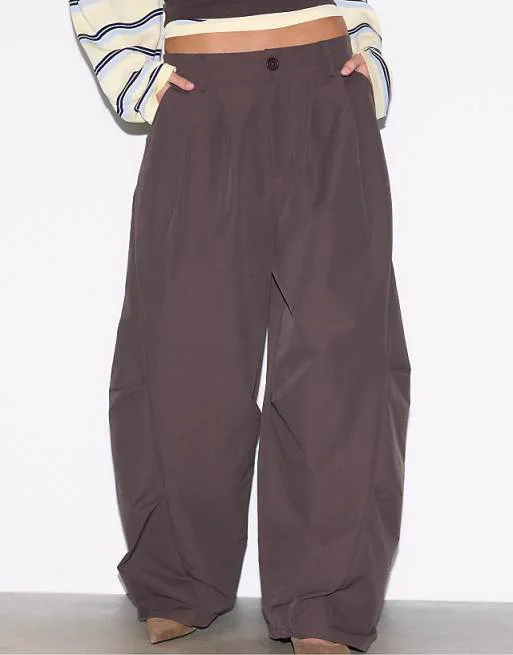 Особенностью модели является крой Barrel, который обеспечивает комфортную посадку и свободу движений. Брюки имеют прямой крой по всей длине, что визуально вытягивает силуэт и делает его более стройным. Высокая посадка подчеркивает талию и создает женственный образ.