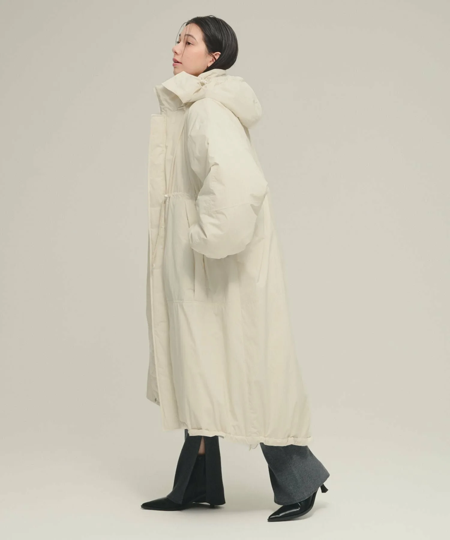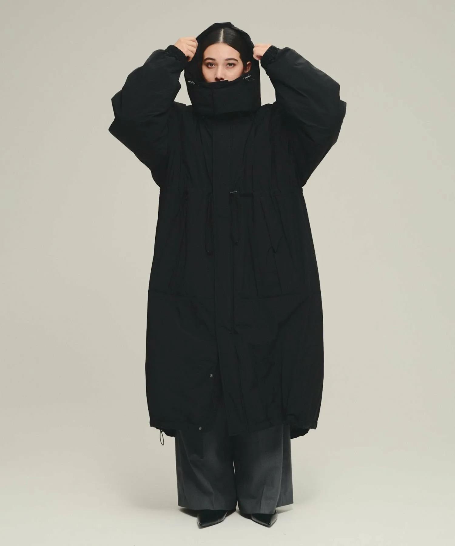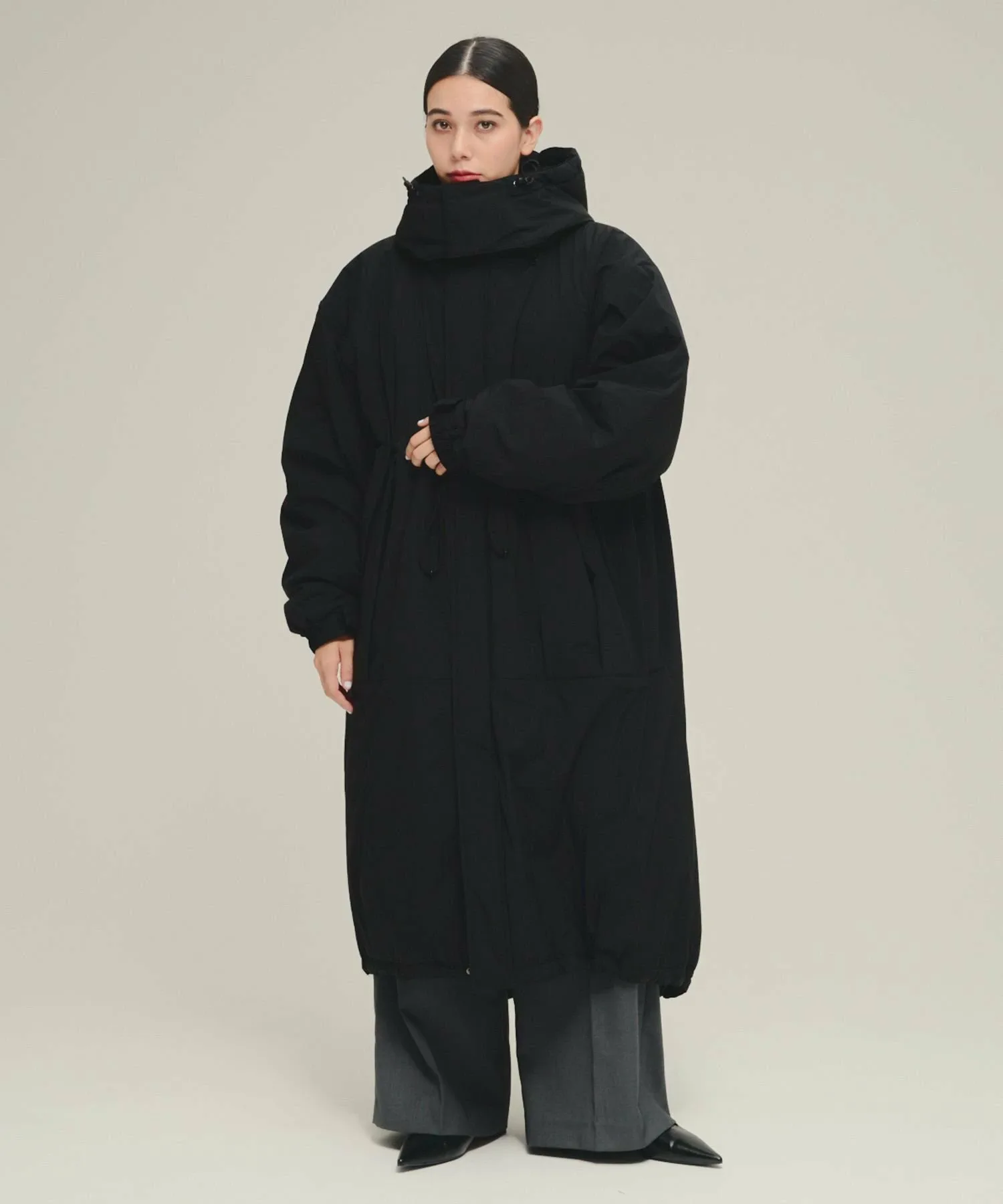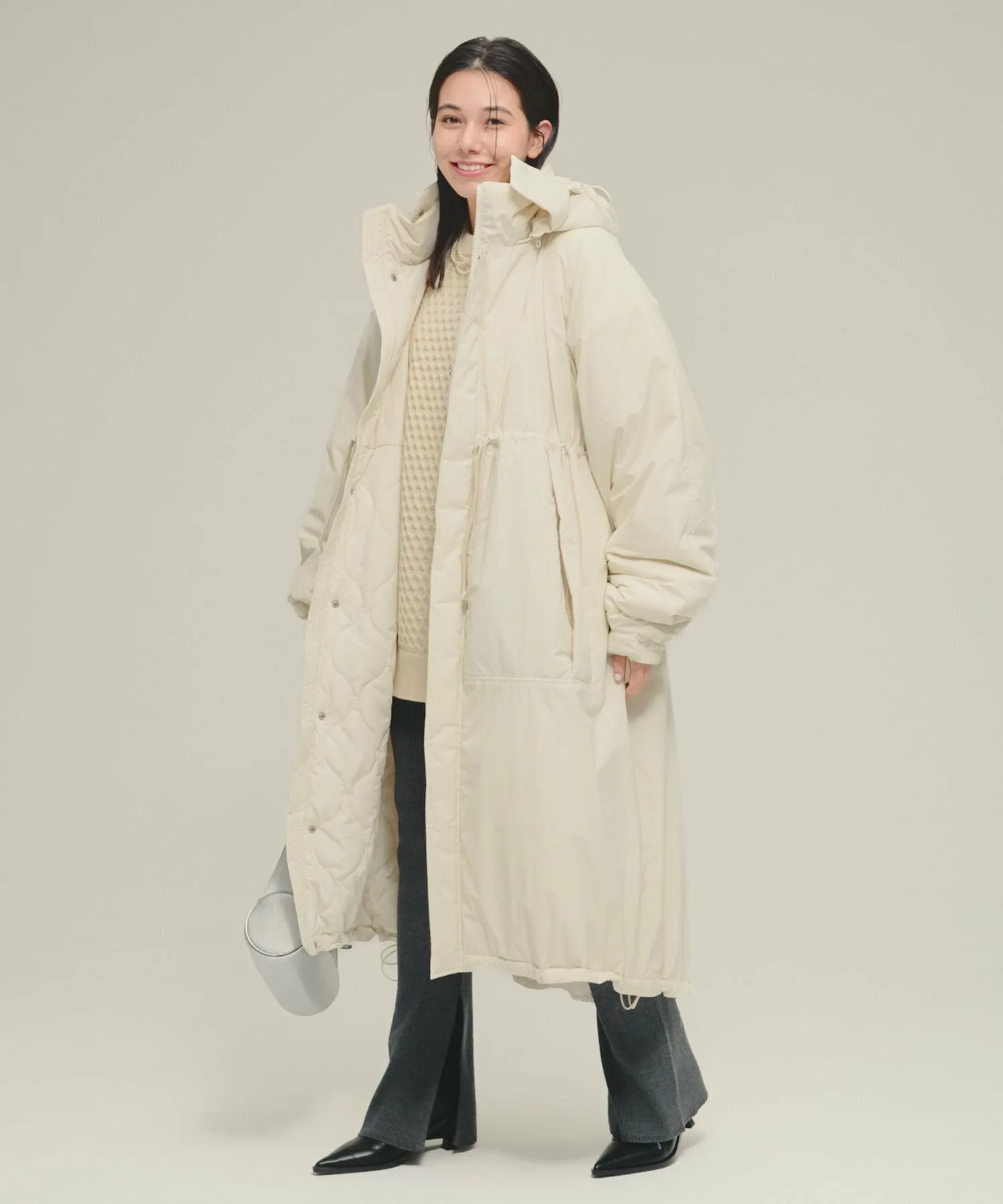 Благодаря длинной длине, облегающей все тело, это пальто — незаменимый элемент гардероба для холодной зимней погоды.