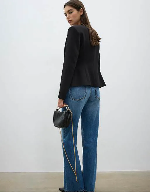 Представляем вашему вниманию стильный черный блейзер от Stradivarius, который станет незаменимой частью вашего гардероба. Эта модель сочетает в себе элегантность и современный дизайн, идеально подходя для создания как деловых, так и повседневных образов.