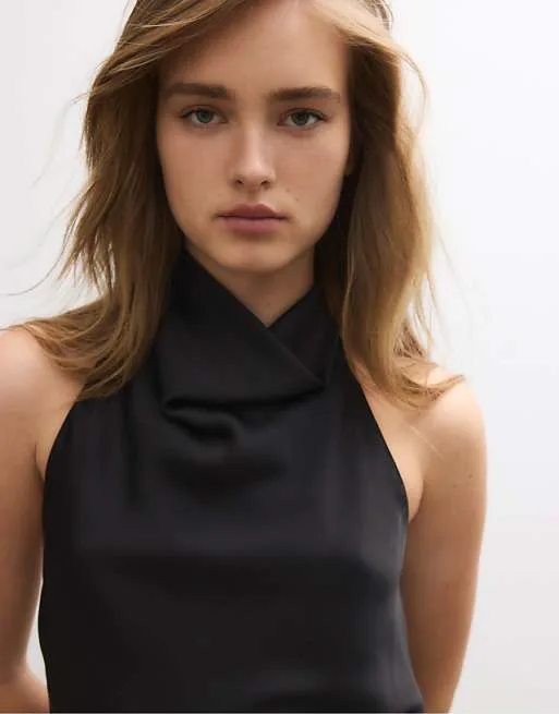 Топ выполнен из ткани сатинового типа, которая обладает рядом преимуществ. Сатин отличается блестящей поверхностью, которая красиво переливается на свету, создавая эффектный визуальный акцент. Ткань также драпируется, что позволяет создавать красивые складки и силуэты. Кроме того, сатин шелковисто-гладкий на ощупь, обеспечивая приятные тактильные ощущения при носке.