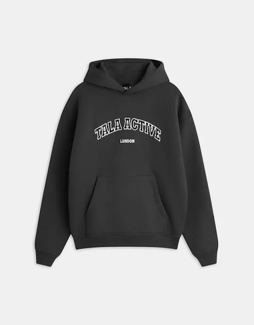 Дизайн толстовки продуман до мелочей. Свободный крой оверсайз обеспечивает максимальную свободу движений и позволяет создавать многослойные образы. Толстовка выполнена в классическом черном цвете, который легко сочетается с любой одеждой. Оригинальная аппликация с надписью Tala Active добавляет индивидуальности и подчеркивает принадлежность к бренду.