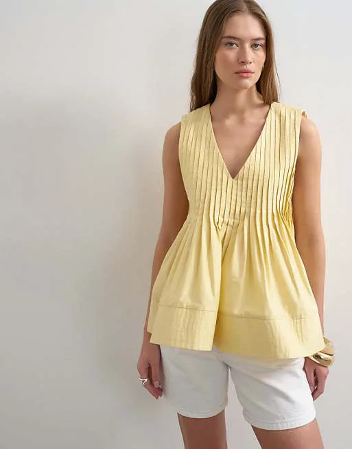 Представляем вашему вниманию элегантный топ от известного бренда Topshop, который станет прекрасным дополнением к вашему летнему гардеробу. Этот топ выполнен в солнечном лимонно-желтом цвете, который мгновенно поднимает настроение и привносит свежесть в любой образ. Модель отличается лаконичным дизайном и продуманными деталями, делающими ее универсальной и подходящей для различных случаев.