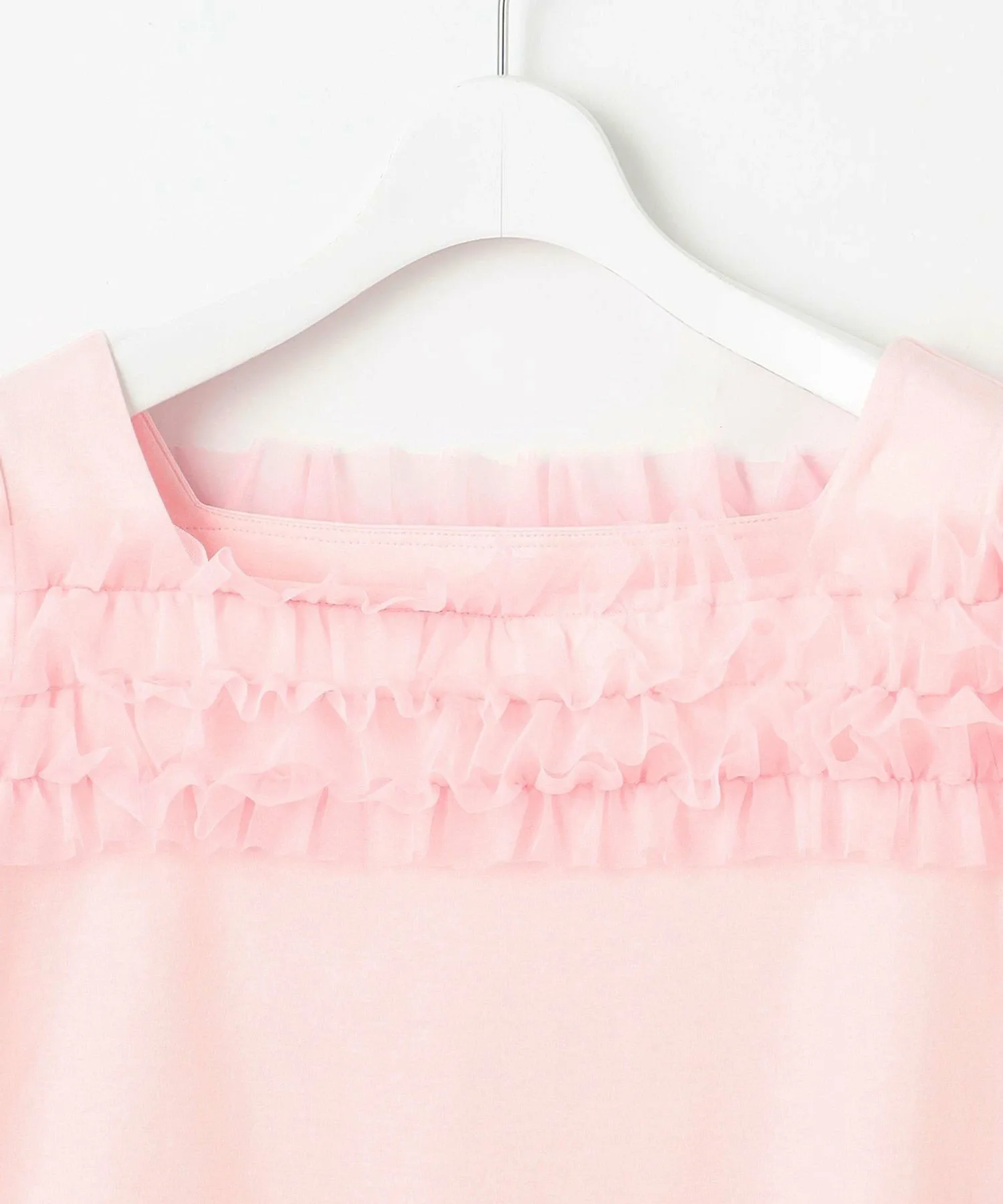 Изготовленная из влагоотводящего трикотажного материала, эта футболка обеспечивает изысканный вид и идеально подходит для комфортной погоды в самую жару. Привлекательный дизайн включает мягкие тюлевые оборки, которые добавляют нотку гламура к линии декольте. Прозрачный тюль создает легкое и элегантное впечатление, формируя женственный, но не детский образ, подчеркивая очарование взрослой женщины. Квадратный вырез также создает чистый, лаконичный вид. Изготовленная из удобного трикотажного материала, она легко сочетается с юбками и брюками, что делает ее универсальной вещью для поездок на работу, прогулок и свиданий.