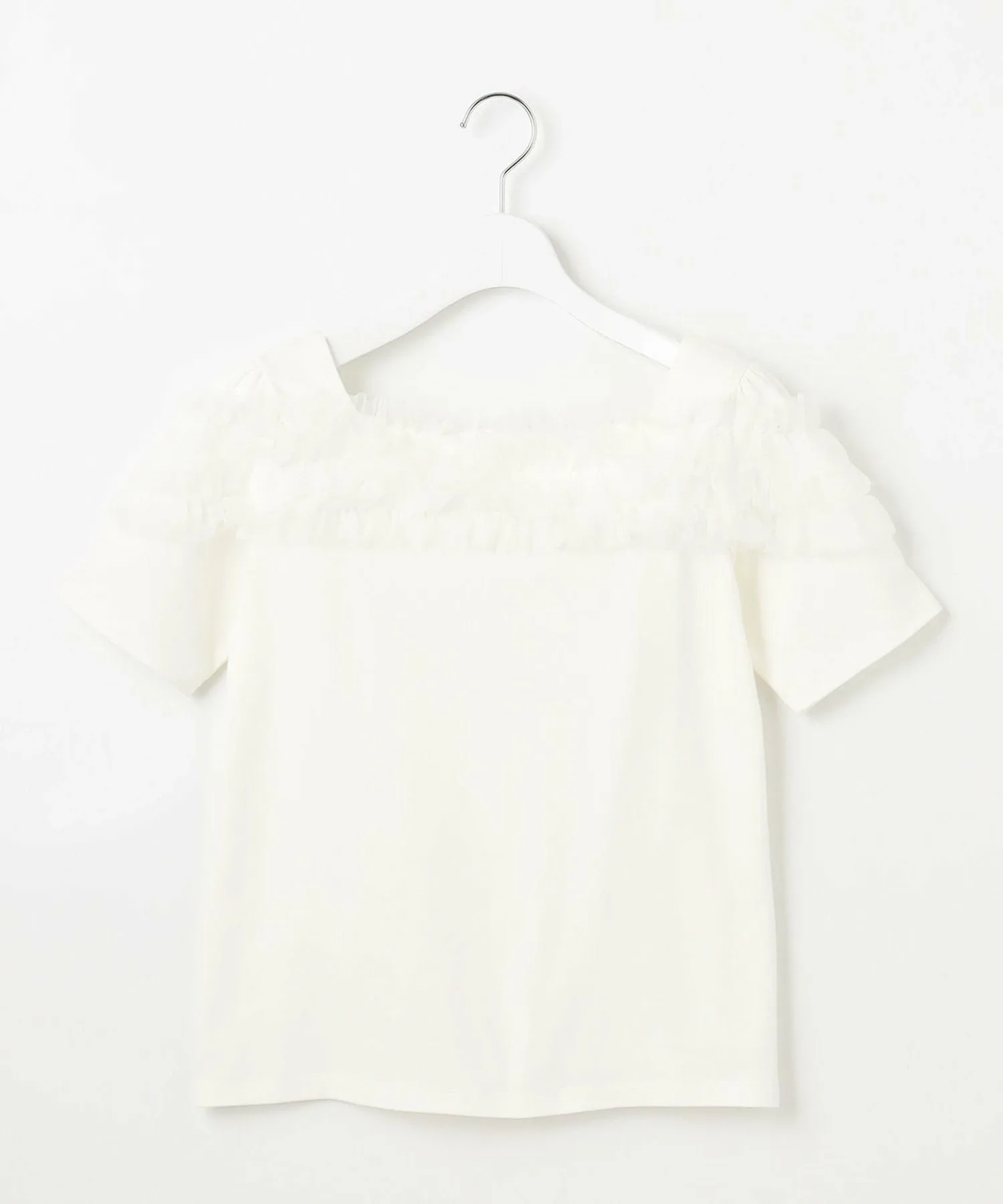 Изготовленная из влагоотводящего трикотажного материала, эта футболка обеспечивает изысканный вид и идеально подходит для комфортной погоды в самую жару. Привлекательный дизайн включает мягкие тюлевые оборки, которые добавляют нотку гламура к линии декольте. Прозрачный тюль создает легкое и элегантное впечатление, формируя женственный, но не детский образ, подчеркивая очарование взрослой женщины. Квадратный вырез также создает чистый, лаконичный вид. Изготовленная из удобного трикотажного материала, она легко сочетается с юбками и брюками, что делает ее универсальной вещью для поездок на работу, прогулок и свиданий.