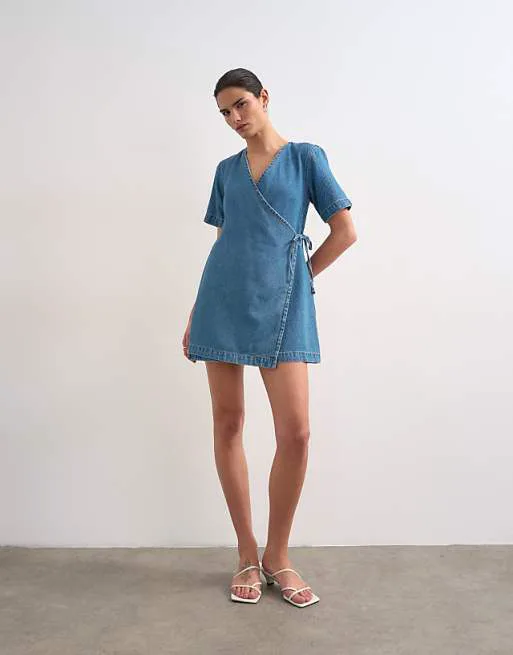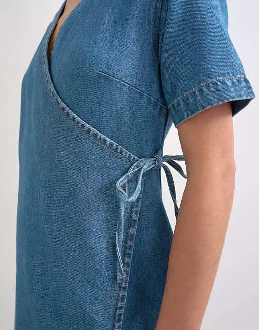 Представляем вашему вниманию стильное голубое джинсовое платье мини с запахом от известного бренда Topshop. Это платье станет прекрасным дополнением к вашему гардеробу, подчеркивая вашу женственность и безупречный вкус.