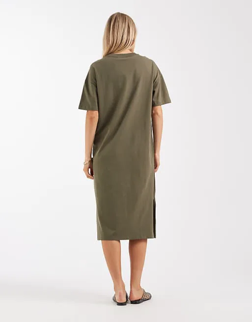 Представляем вам зеленое платье-футболку оверсайз от известного бренда Vero Moda. Это платье сочетает в себе удобство и современный стиль, идеально подходящее для создания расслабленных, но модных образов.