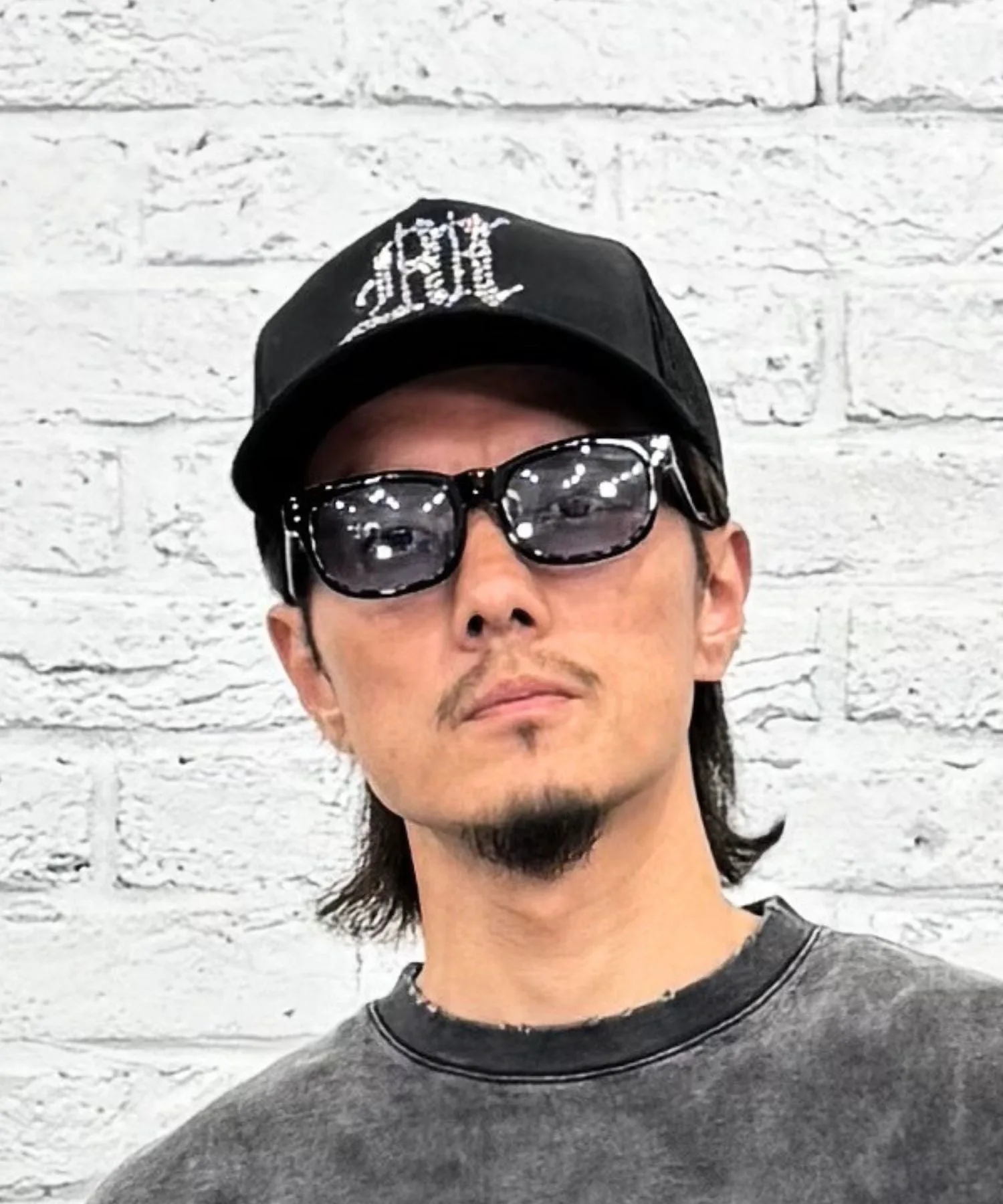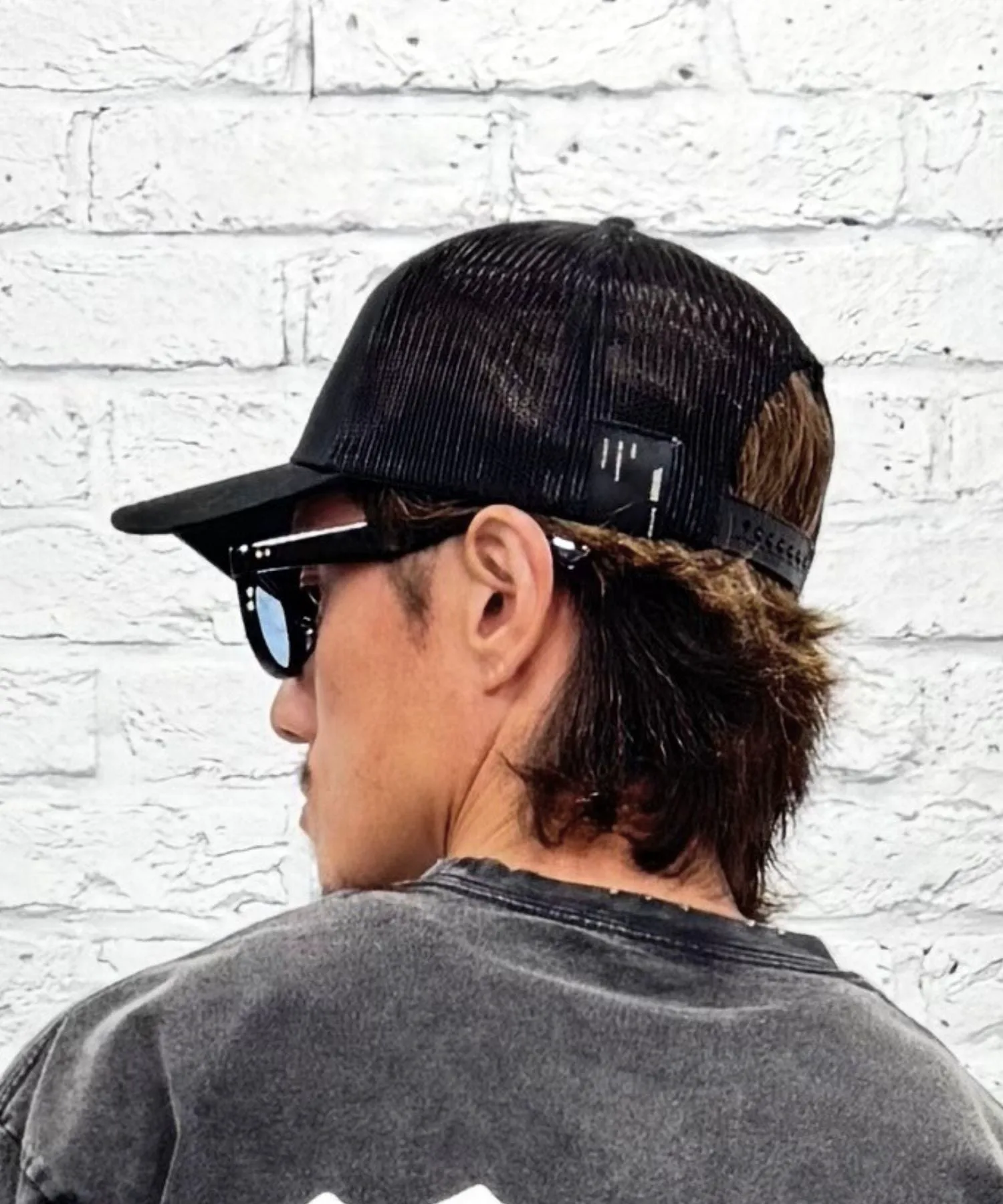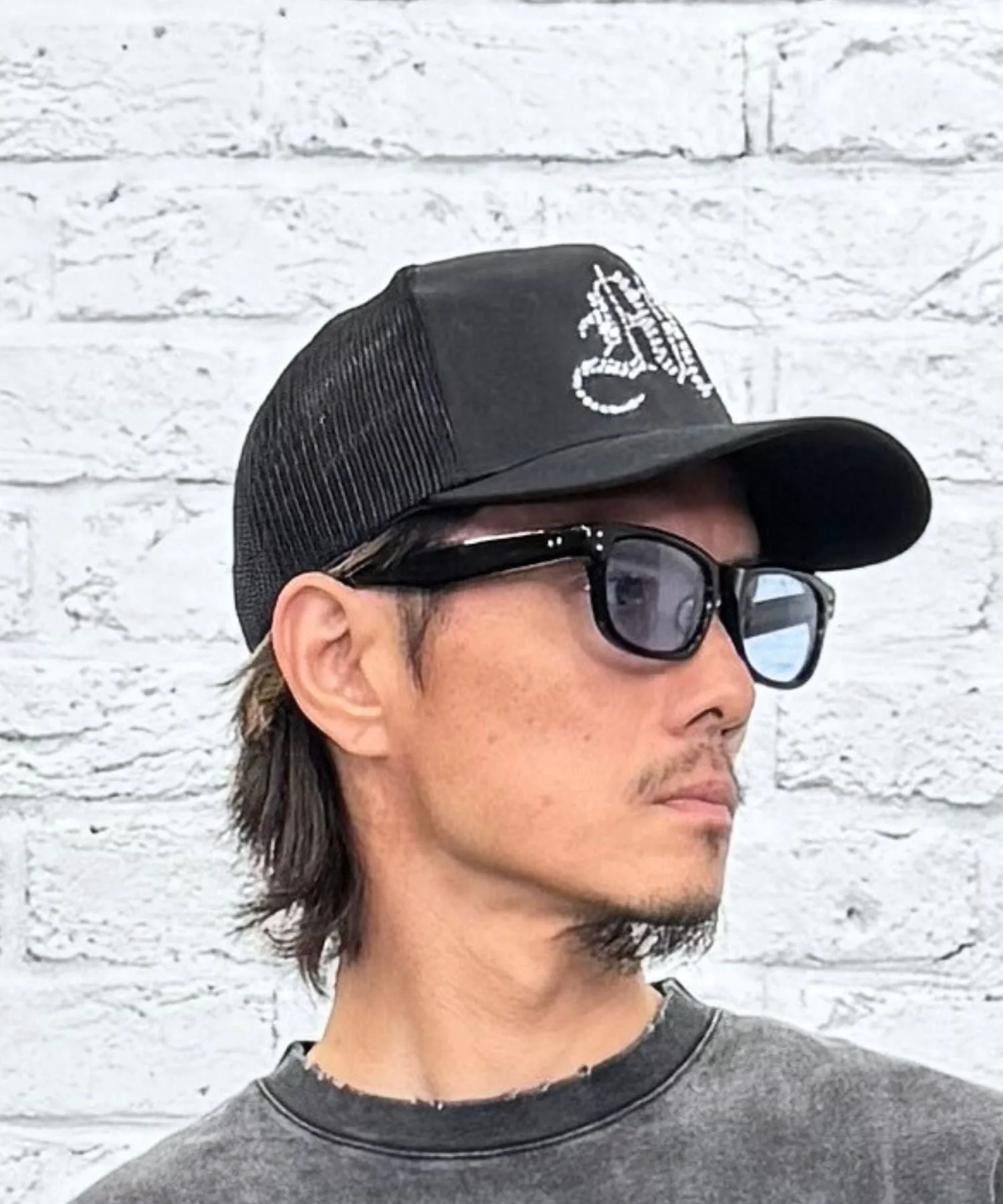 сетчатая кепка с логотипом «M», выполненным из сверкающих стразов.