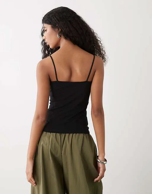 Представляем вашему вниманию классическую черную майку Weekday Demi, которая станет незаменимой вещью в вашем гардеробе. Эта майка сочетает в себе лаконичный дизайн и комфорт, что делает ее идеальным выбором для повседневной носки или в качестве основы для многослойных образов.