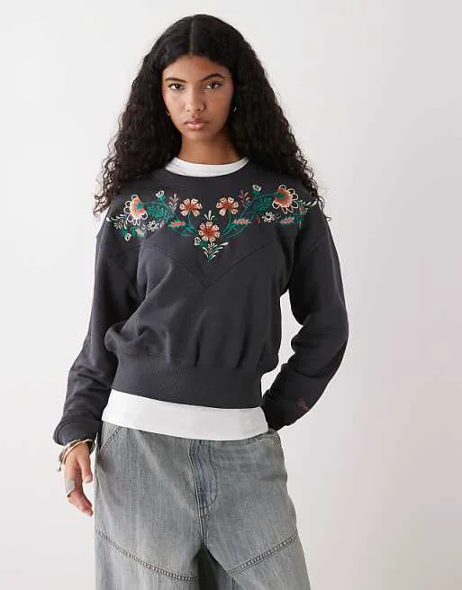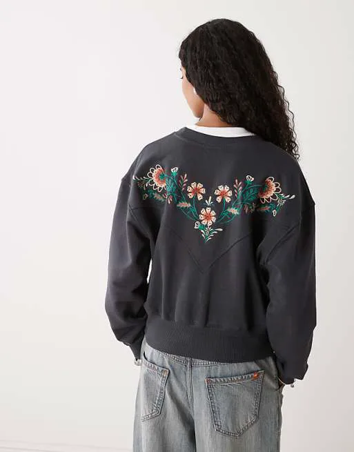 Одной из главных особенностей этого свитера является цветочная вышивка, которая расположена спереди и сзади, придавая изделию неповторимый шарм и женственность. Вышивка выполнена с высокой точностью, подчеркивая внимание бренда к деталям. Вышивка Wrangler на рукаве добавляет узнаваемость и подтверждает подлинность изделия.