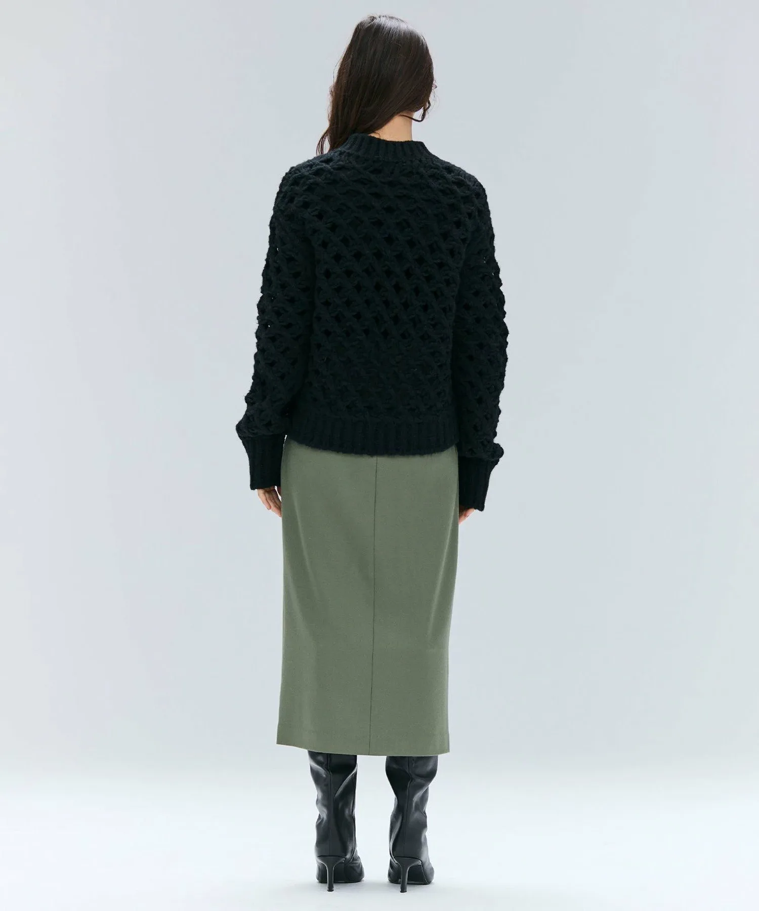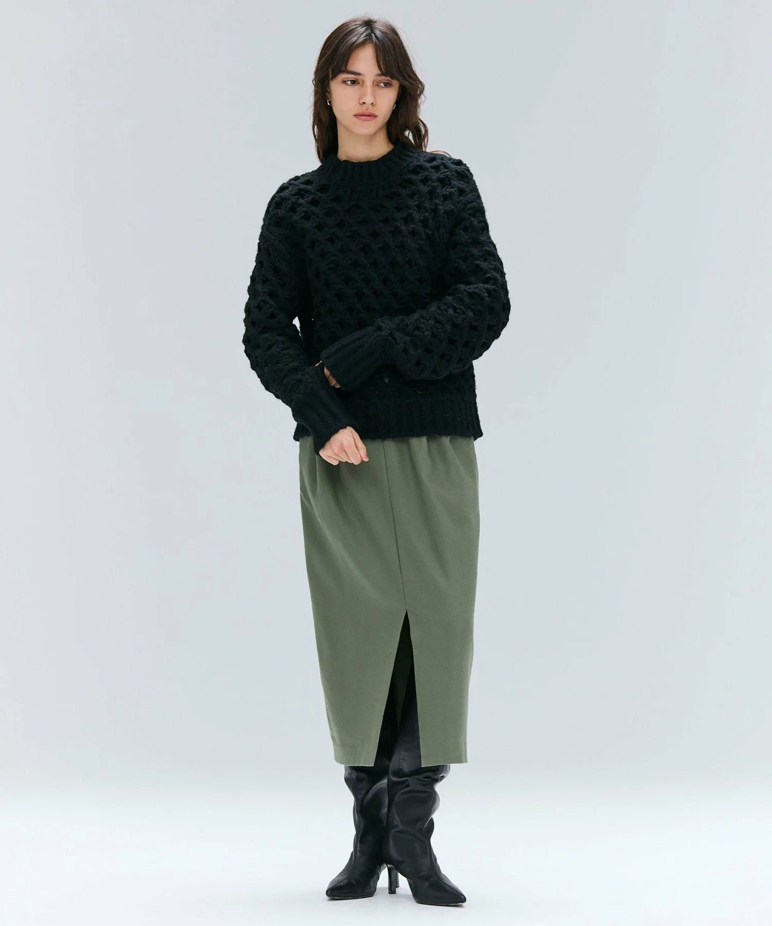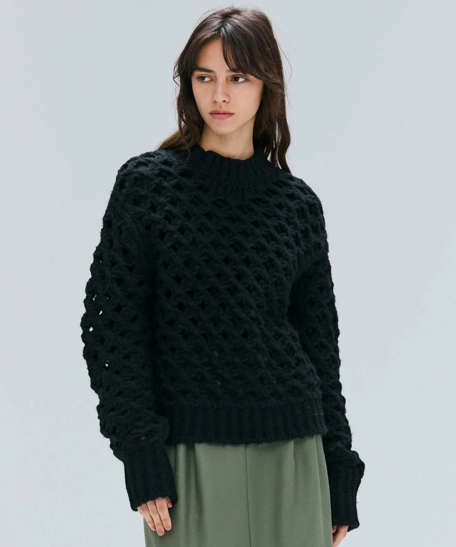 Представляем этот трикотажный топ с необычным дизайном. Смелая сетчатая ткань создает трехмерный эффект, а мягкая пряжа из смеси альпаки делает его удивительно легким и теплым, несмотря на внешний вид. Несмотря на простой дизайн, его можно носить с внутренним слоем, выглядывающим из-под топа, или сочетать с водолазкой или другим топом для создания универсального образа. Его можно носить с различными вариантами низа, от стильных брюк до более женственной юбки. Просто добавьте этот трикотаж в свой повседневный образ для создания изысканного стиля.