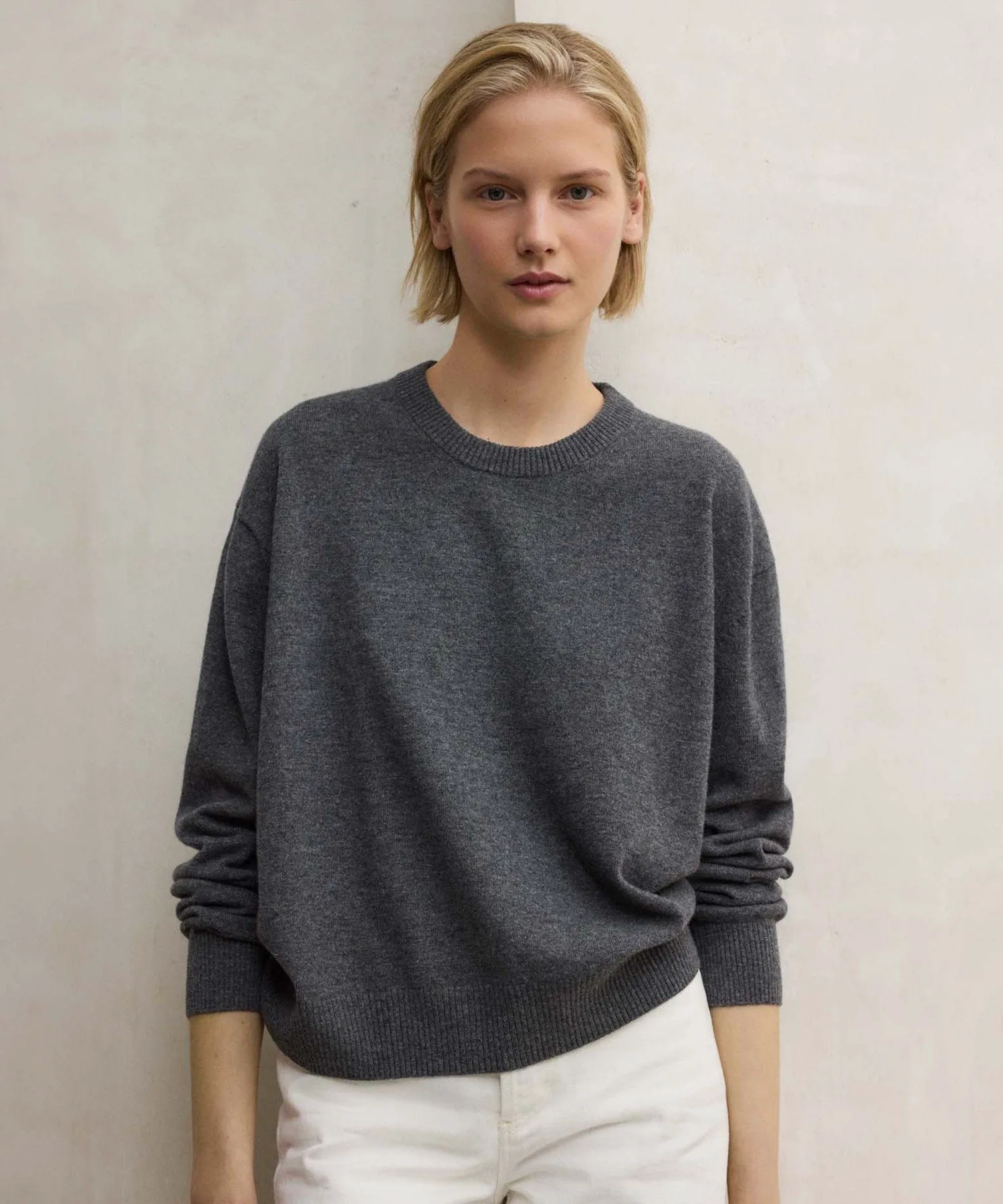Трикотаж с круглым вырезом из переработанной шерсти.