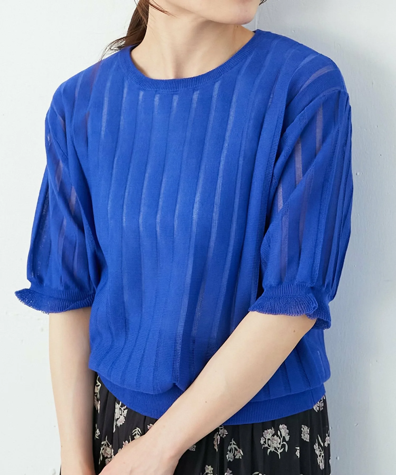 Этот полупрозрачный полосатый трикотаж идеально подходит для лета, его полупрозрачная текстура усиливает ощущение прохлады.