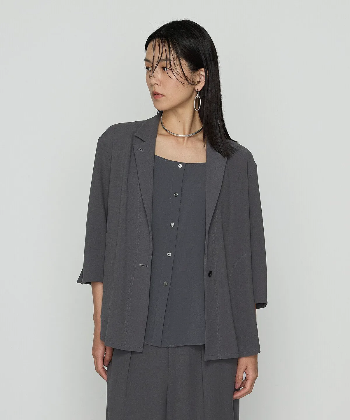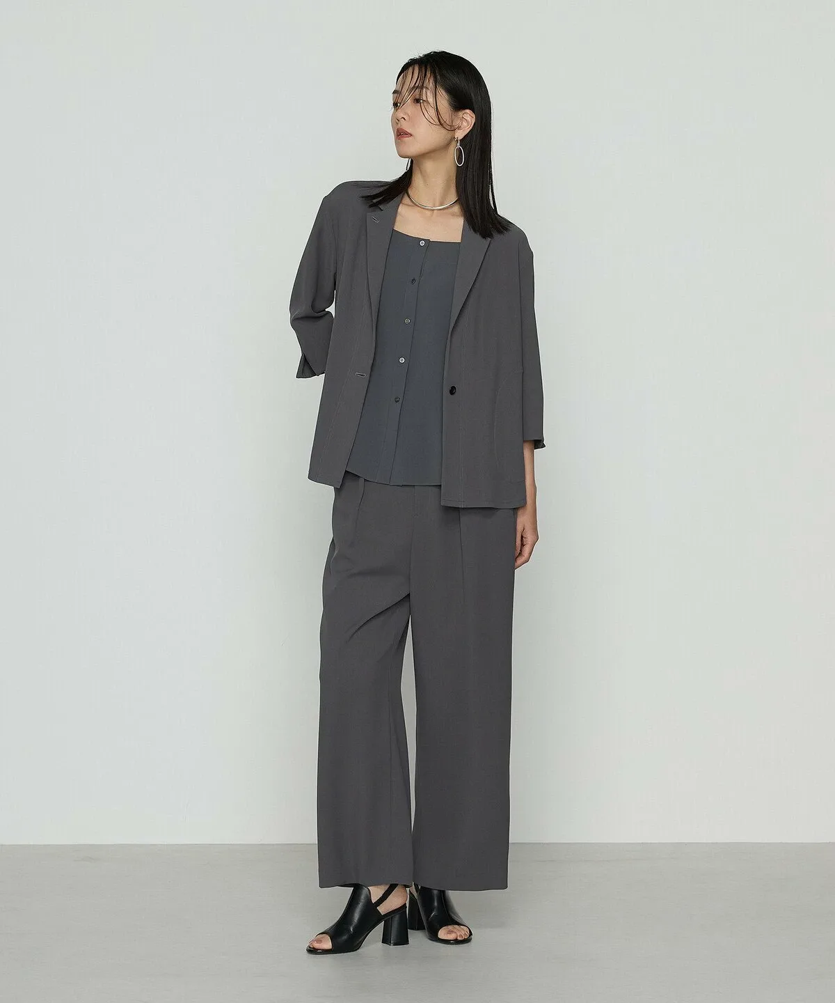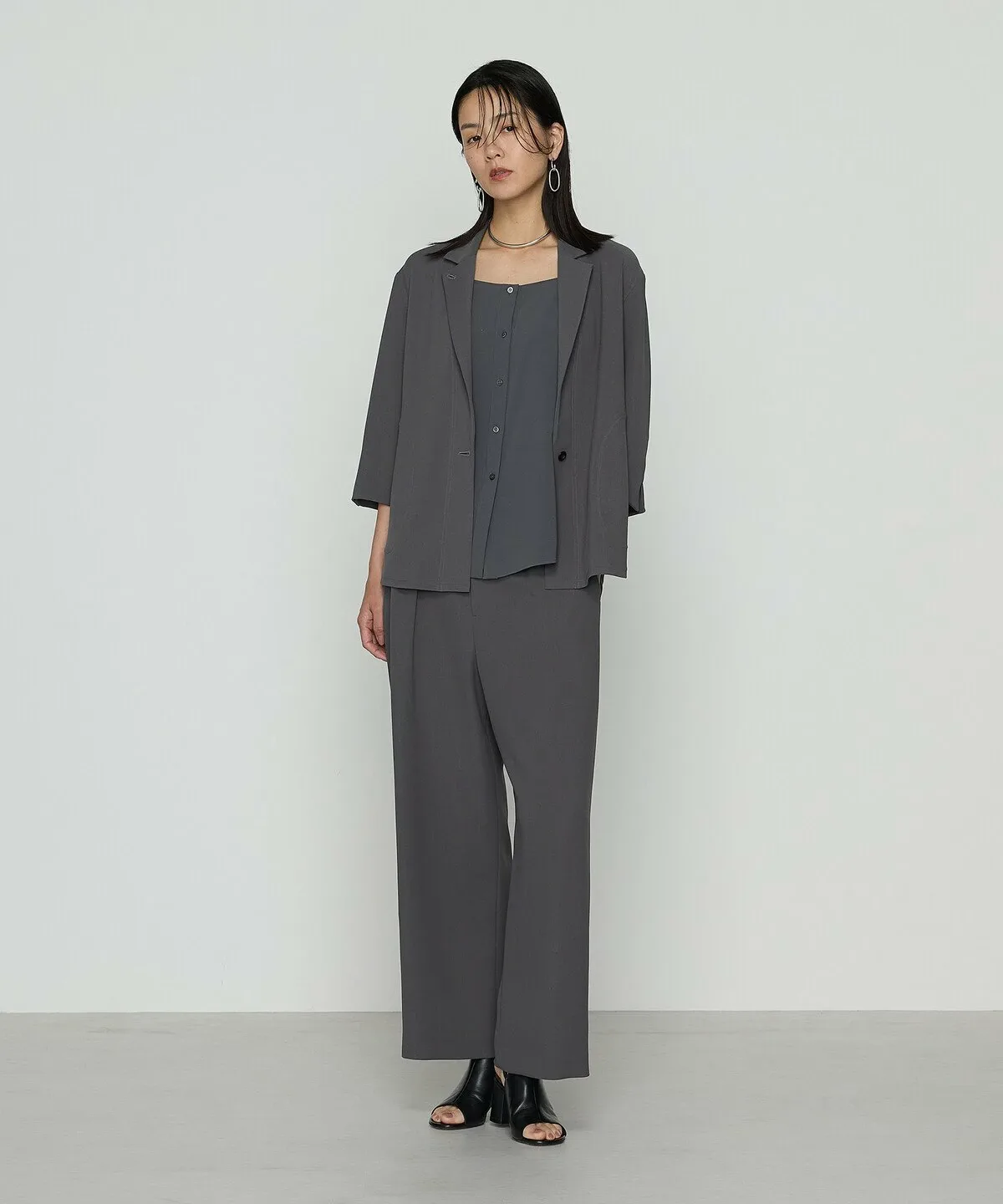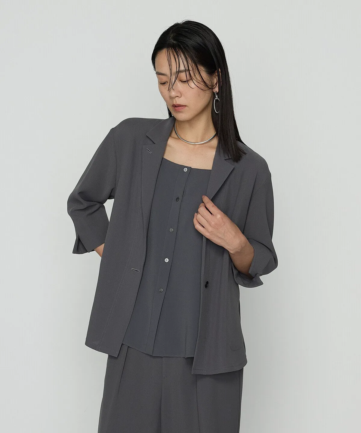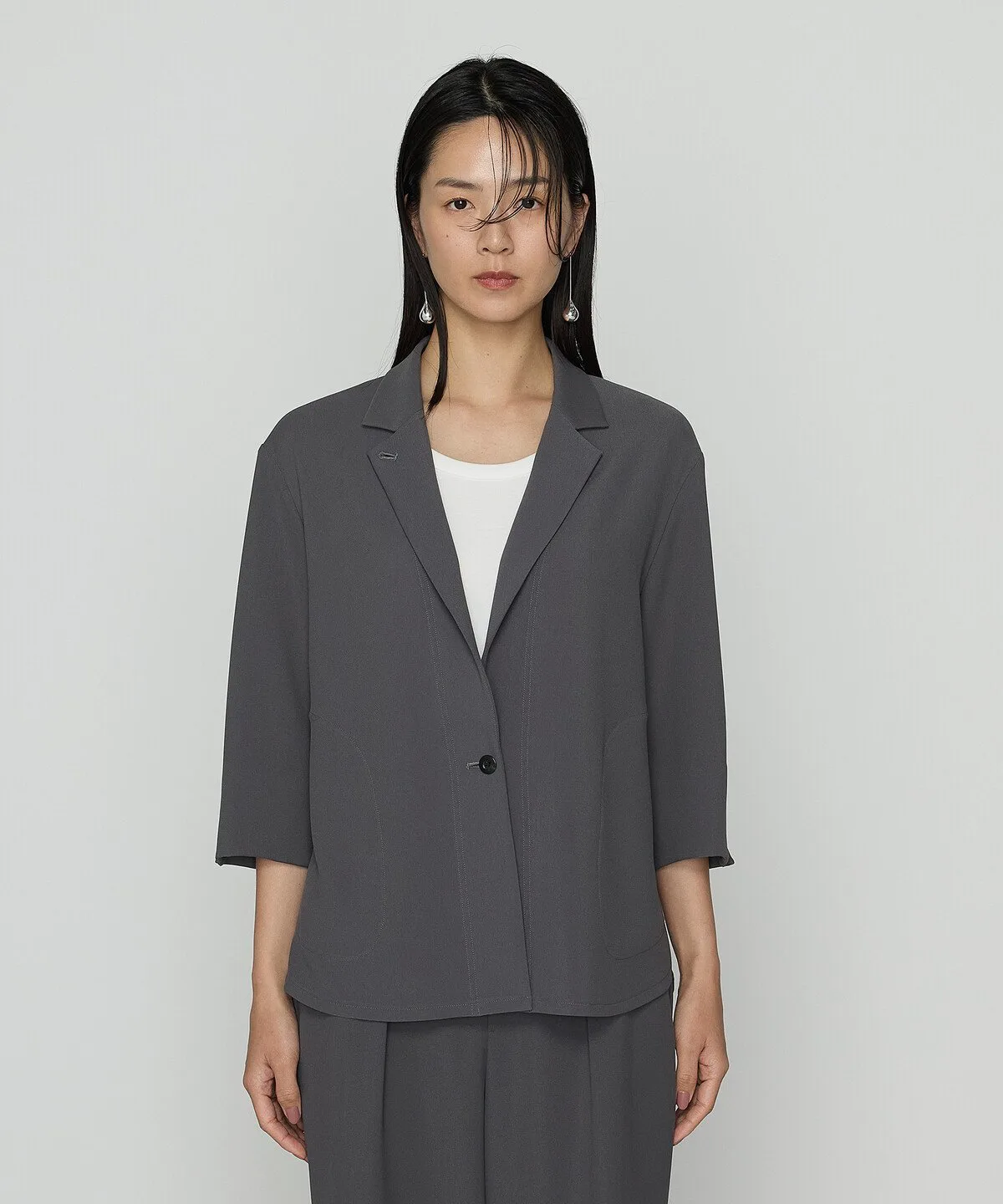 Можно носить в комплекте с брюками из того же материала (