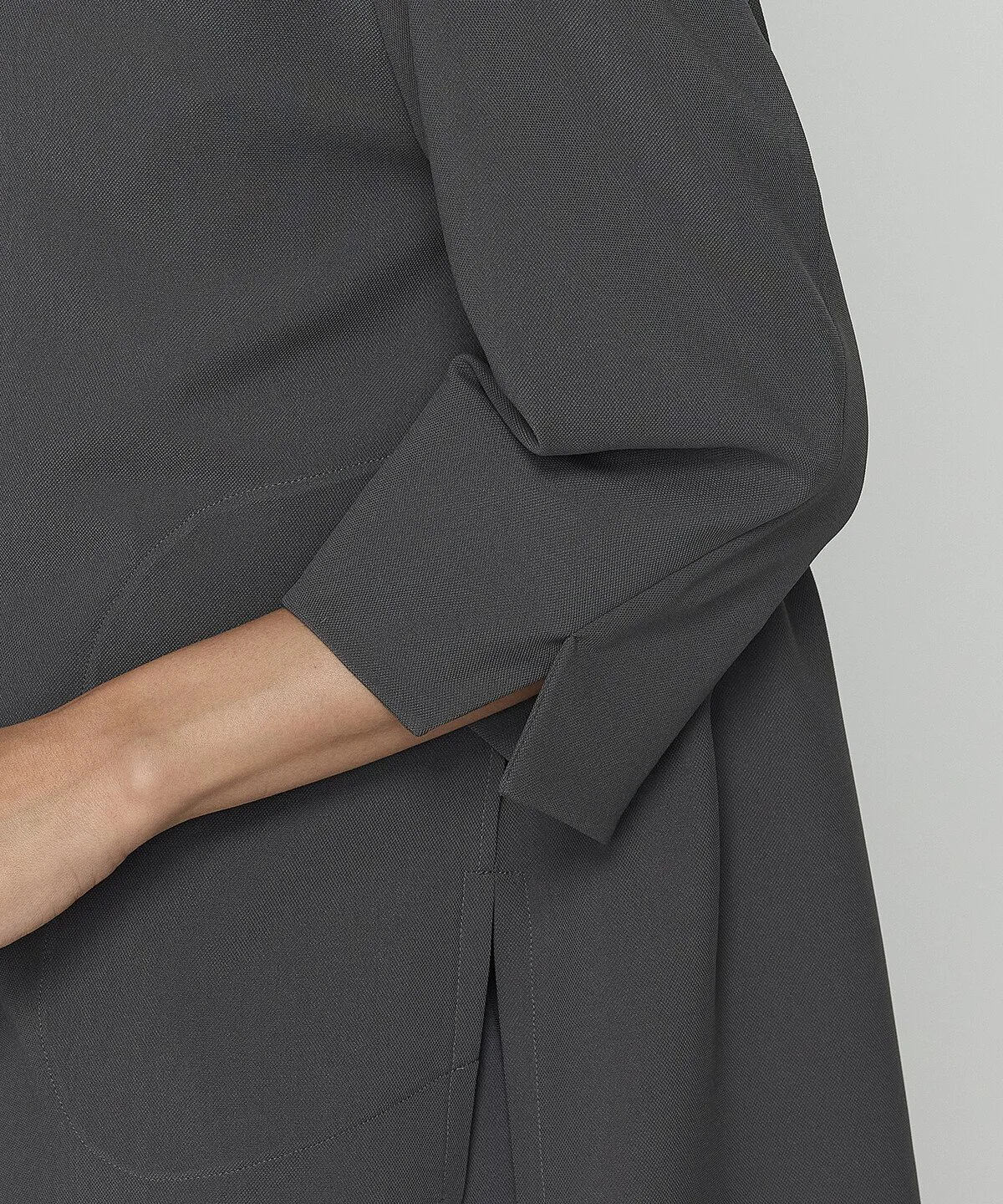 Однослойная конструкция, боковые разрезы и закругленный нижний край создают ощущение легкости и посадки, как у рубашки.