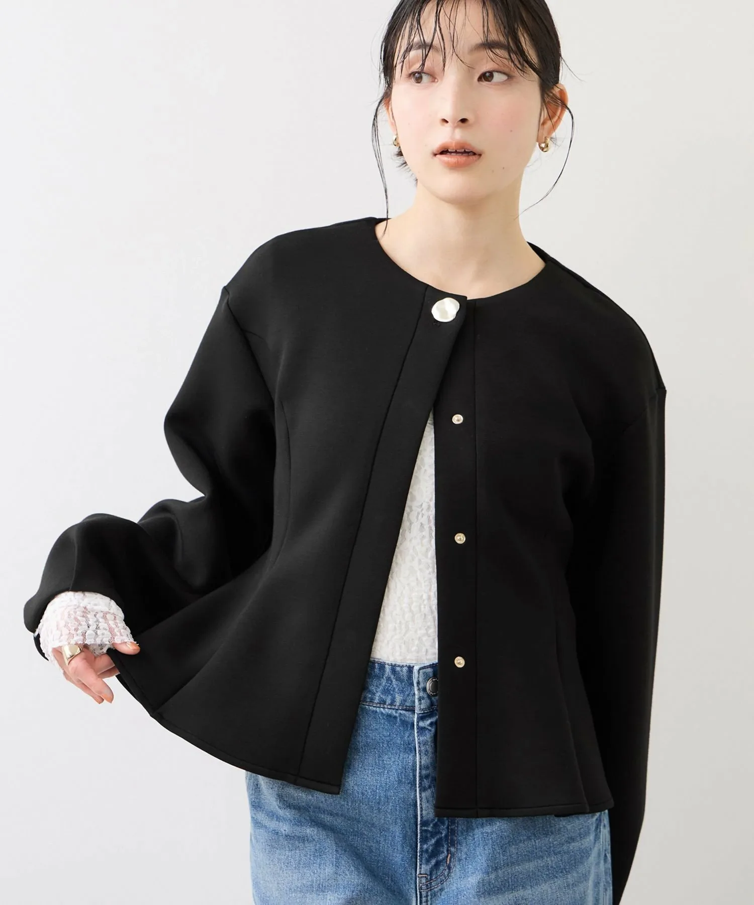 - Кардиган с баской, который выделяется сам по себе.