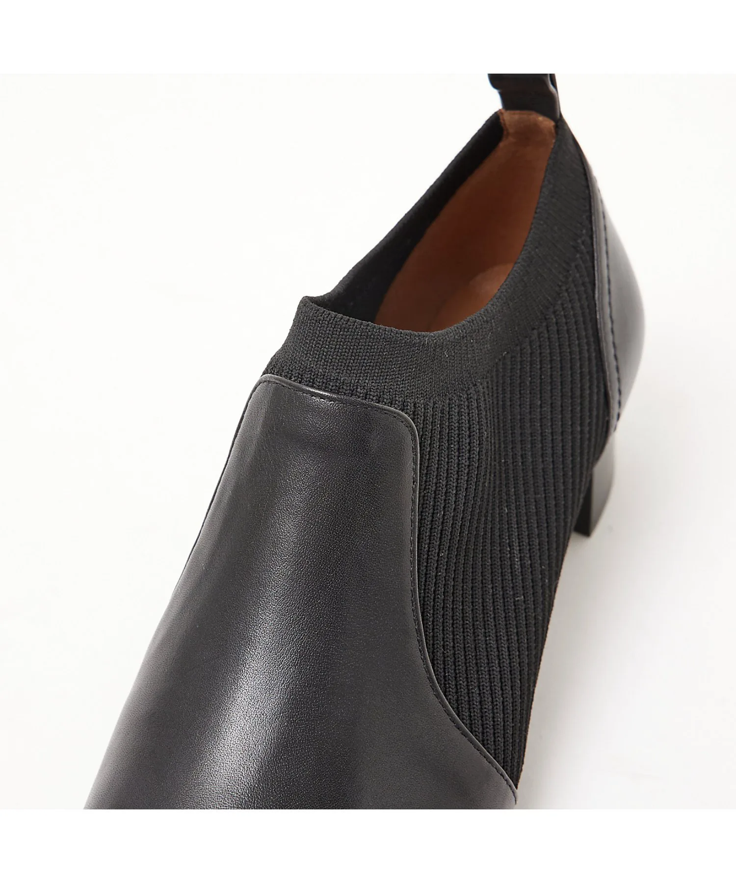 Сочетание натуральной кожи и эластичного трикотажа создает дизайн, наполненный сезонным настроением.