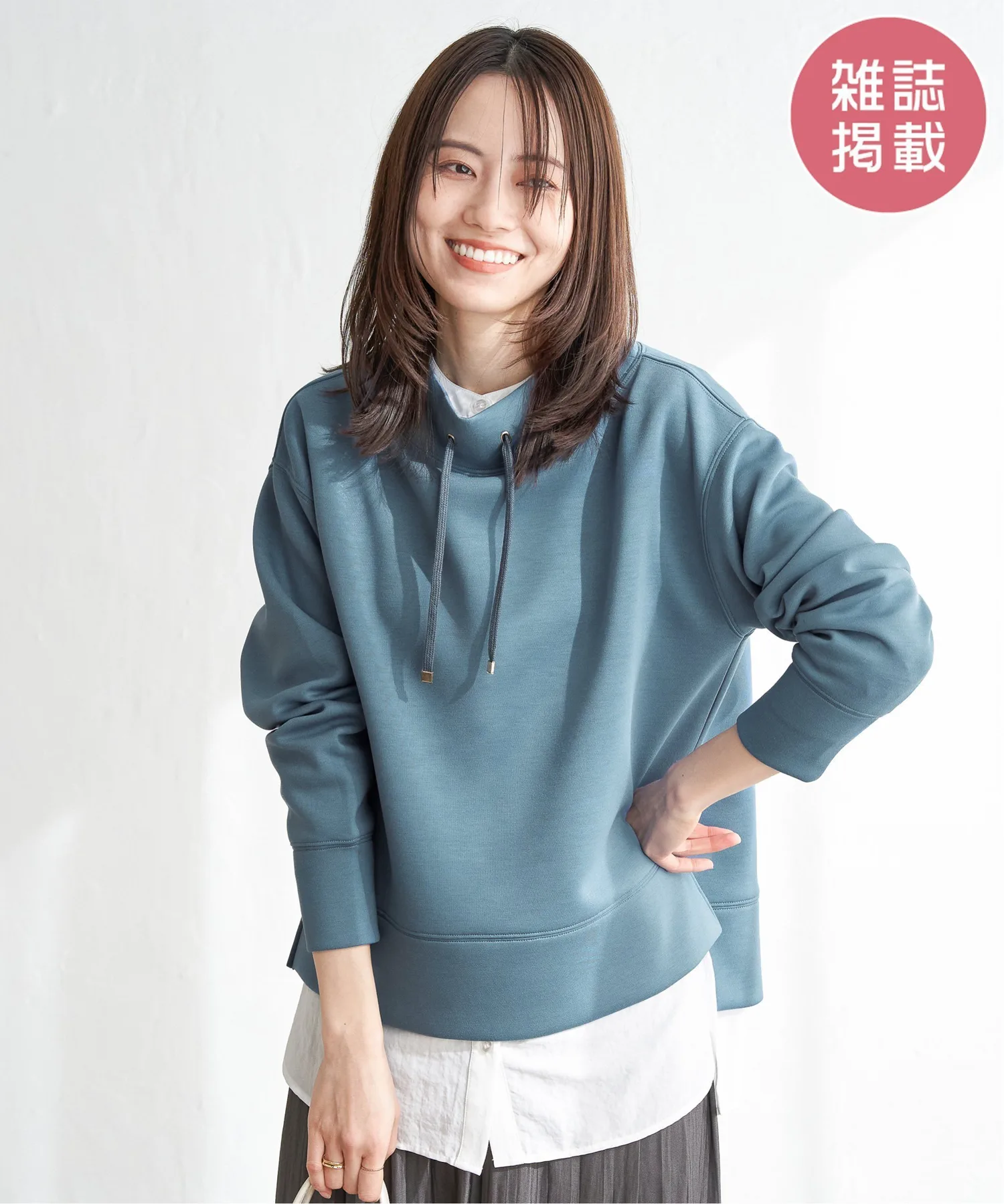 Толстовка с воротником-стойкой и бретелькой для аккуратного вида.