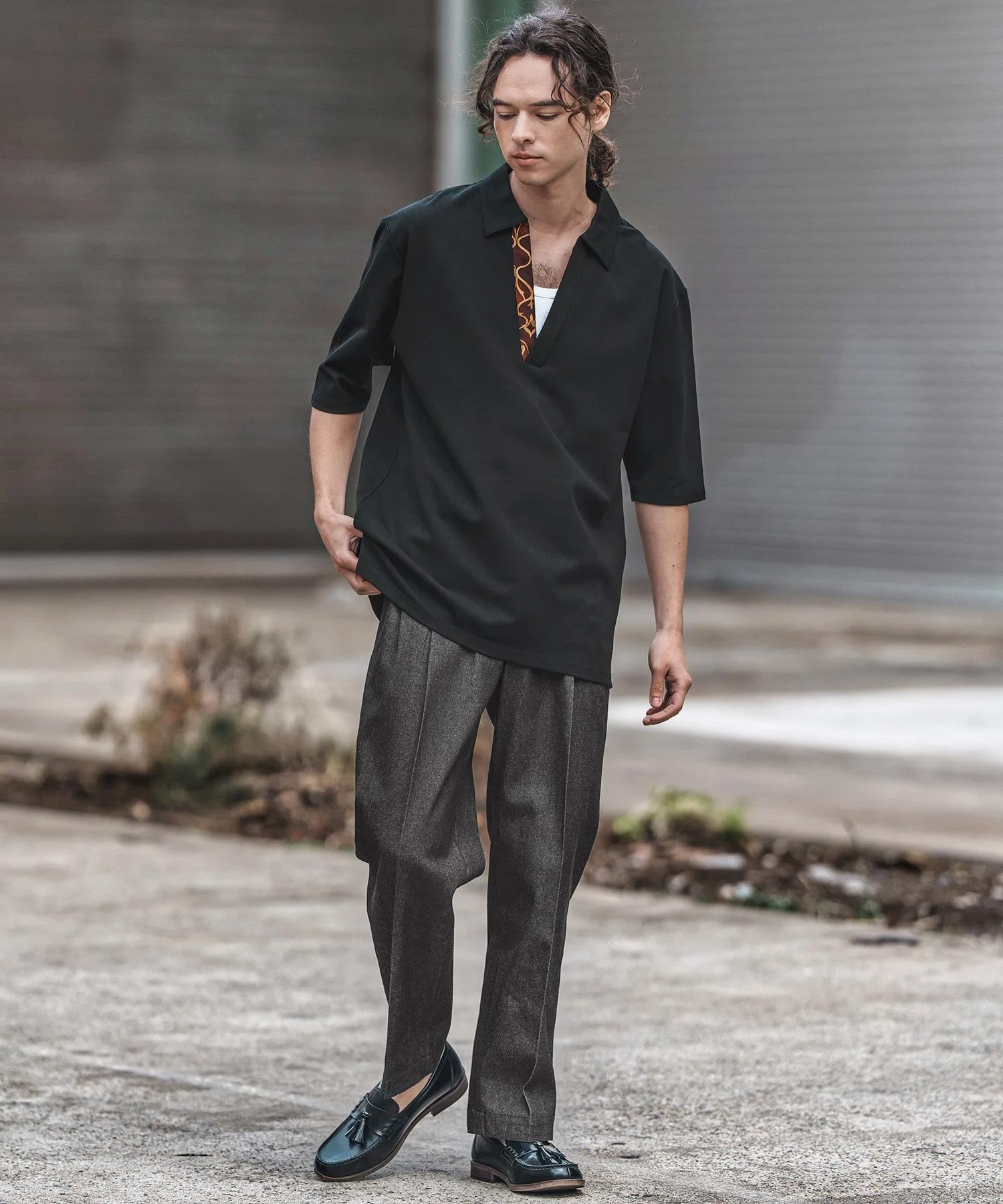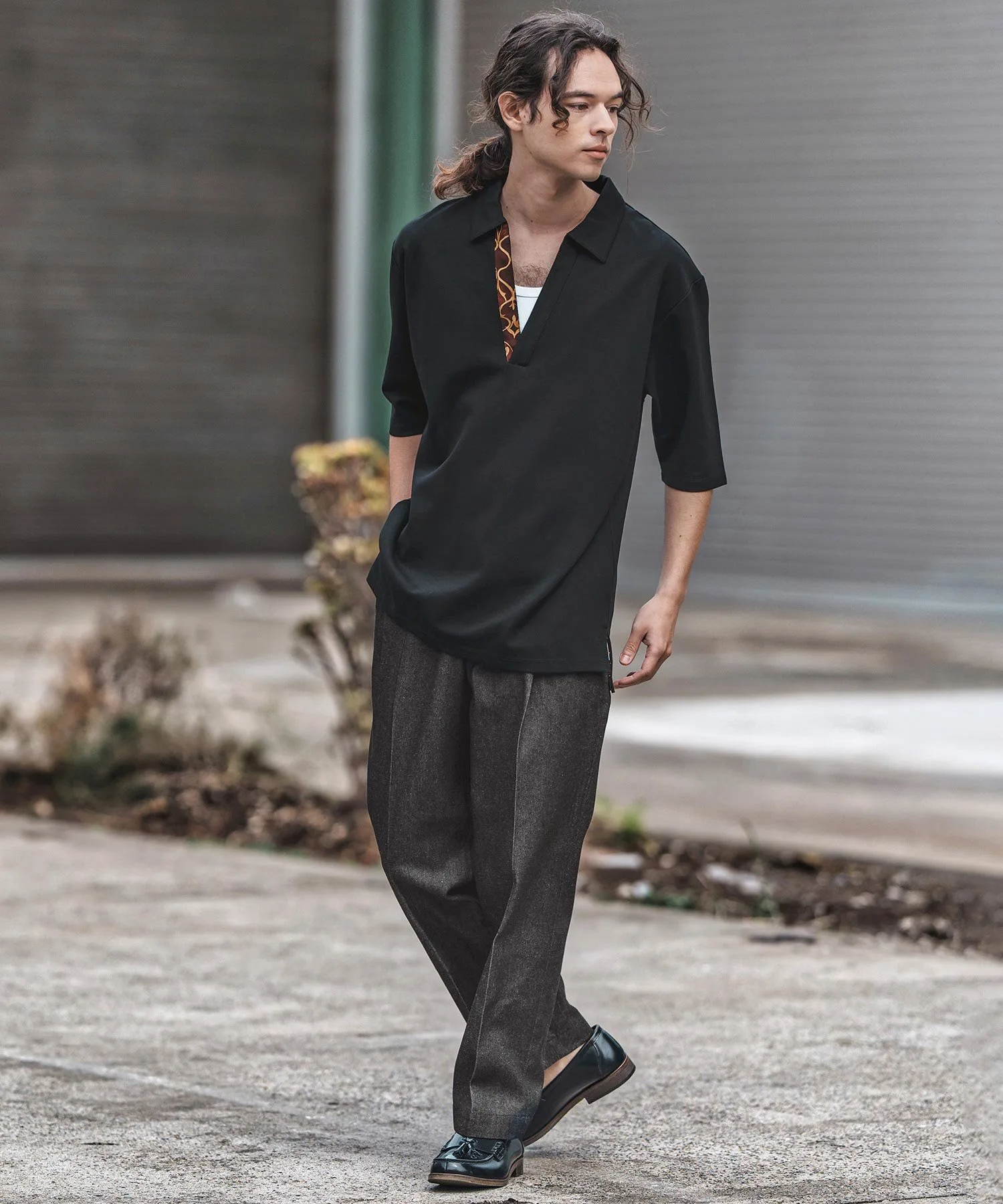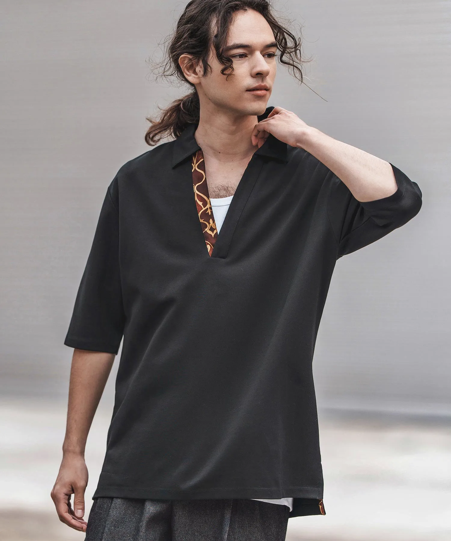 Естественно приспущенные плечи и свободный крой по фигуре и рукавам.