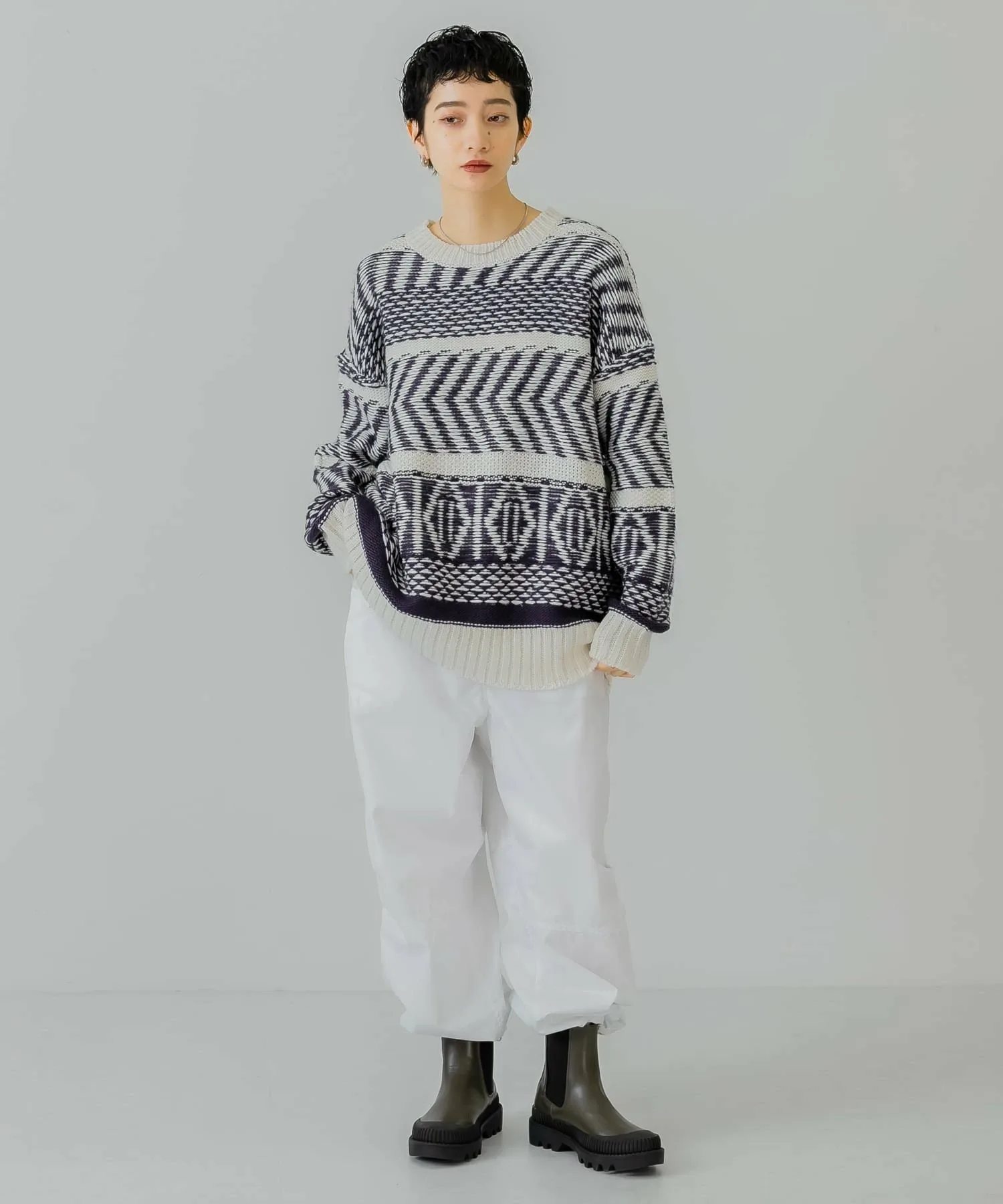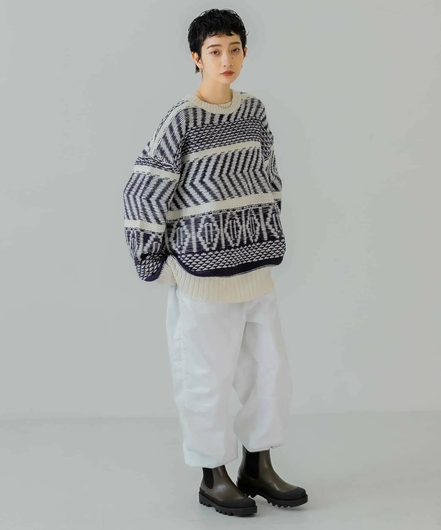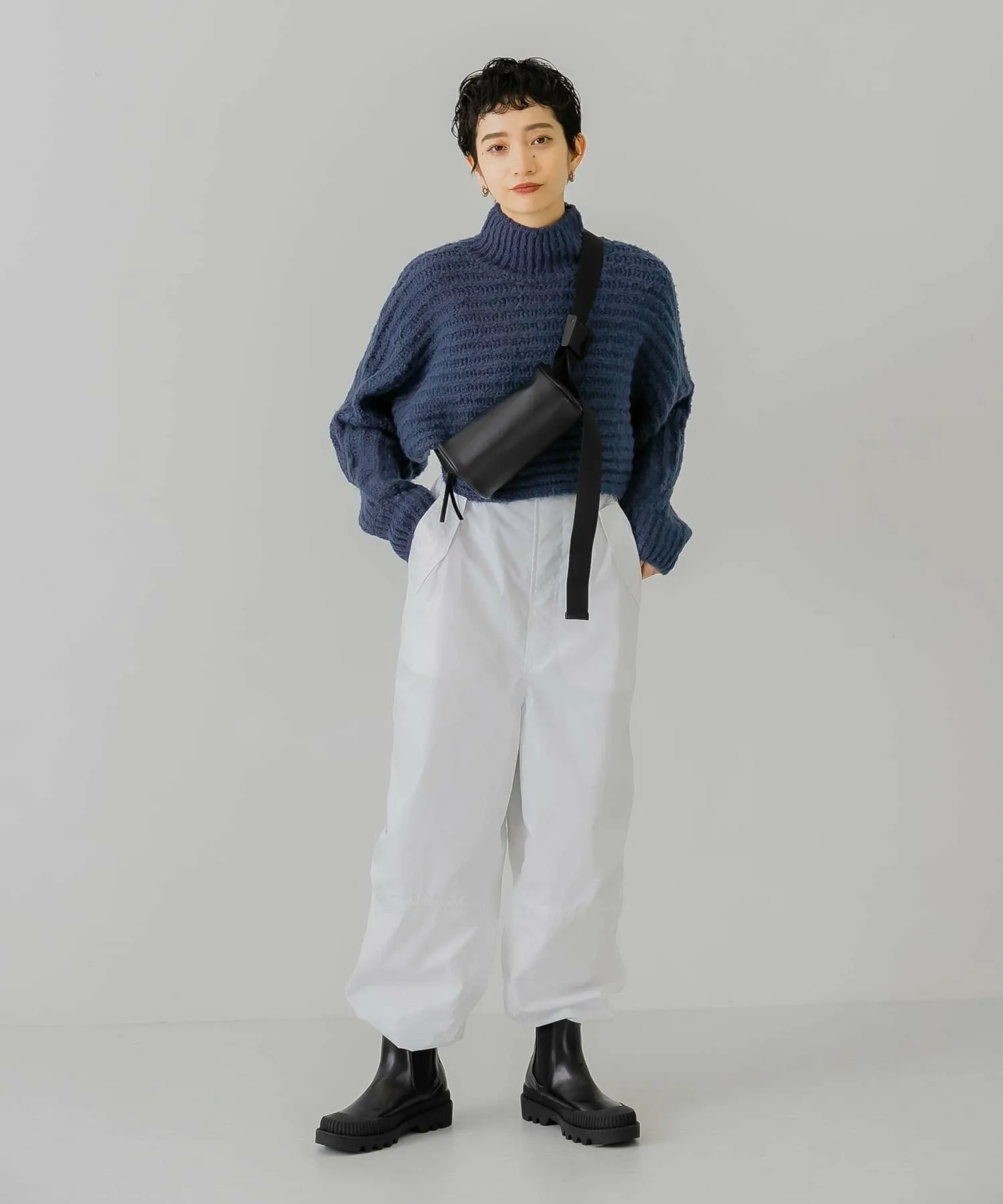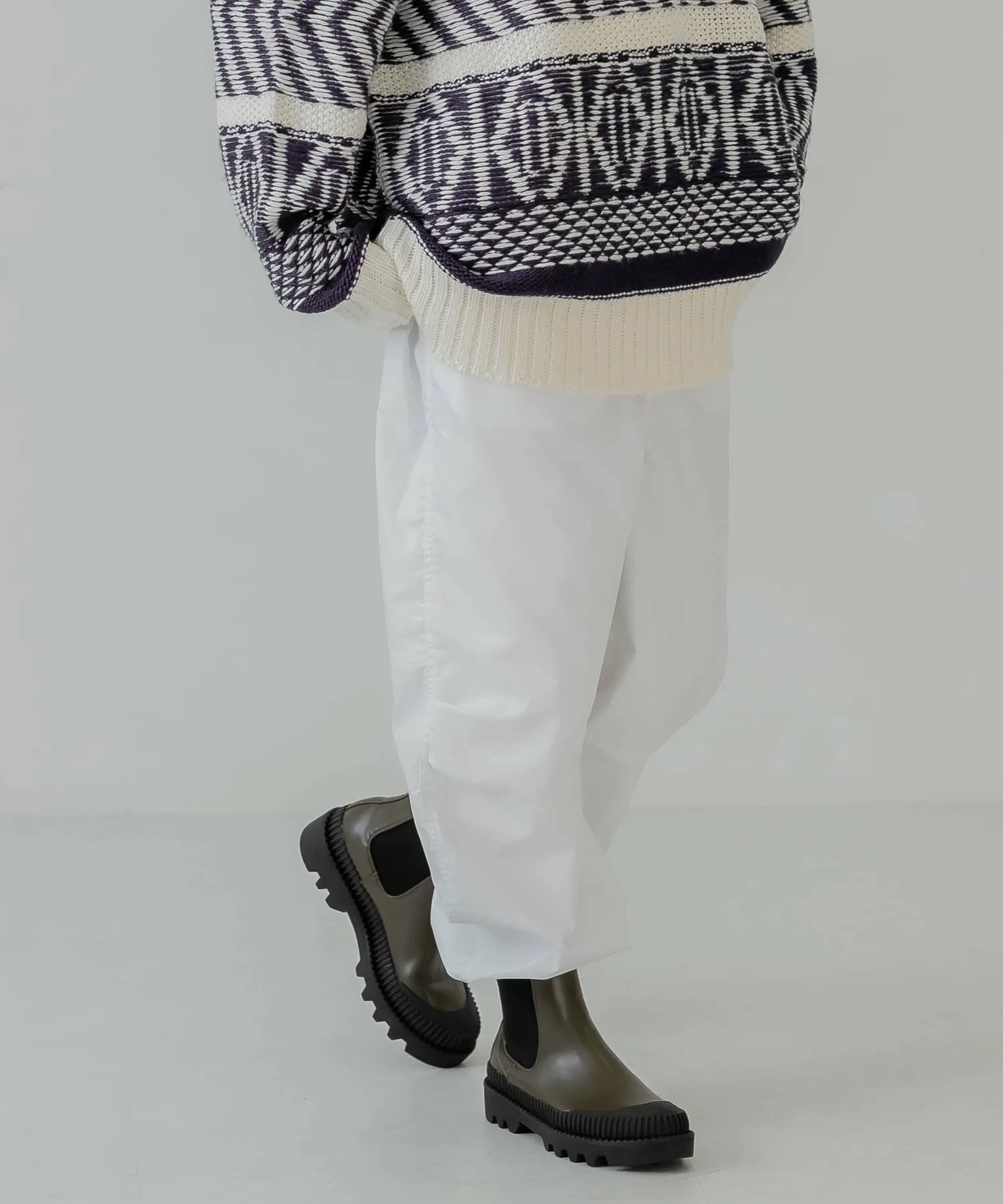 Как следует из названия, эти брюки добавят непринужденности образу, в котором много элементов рабочего стиля. Легкая хлопчатобумажная ткань покрыта смолой для плотного прилегания. Нижний край имеет шнурок, поэтому вы можете регулировать посадку в соответствии со своим настроением. Эта вещь идеально сочетается с трикотажем.