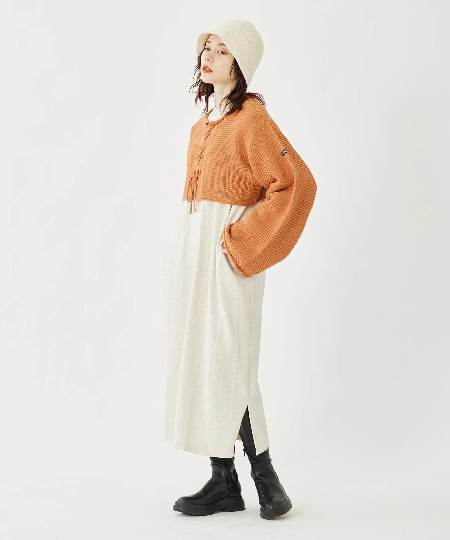 Это платье легко сочетается с любым нарядом, не будучи слишком вычурным, поэтому вы можете менять настроение, меняя верхнюю одежду. ◎ Сочетайте его с длинным пальто для спокойного образа.