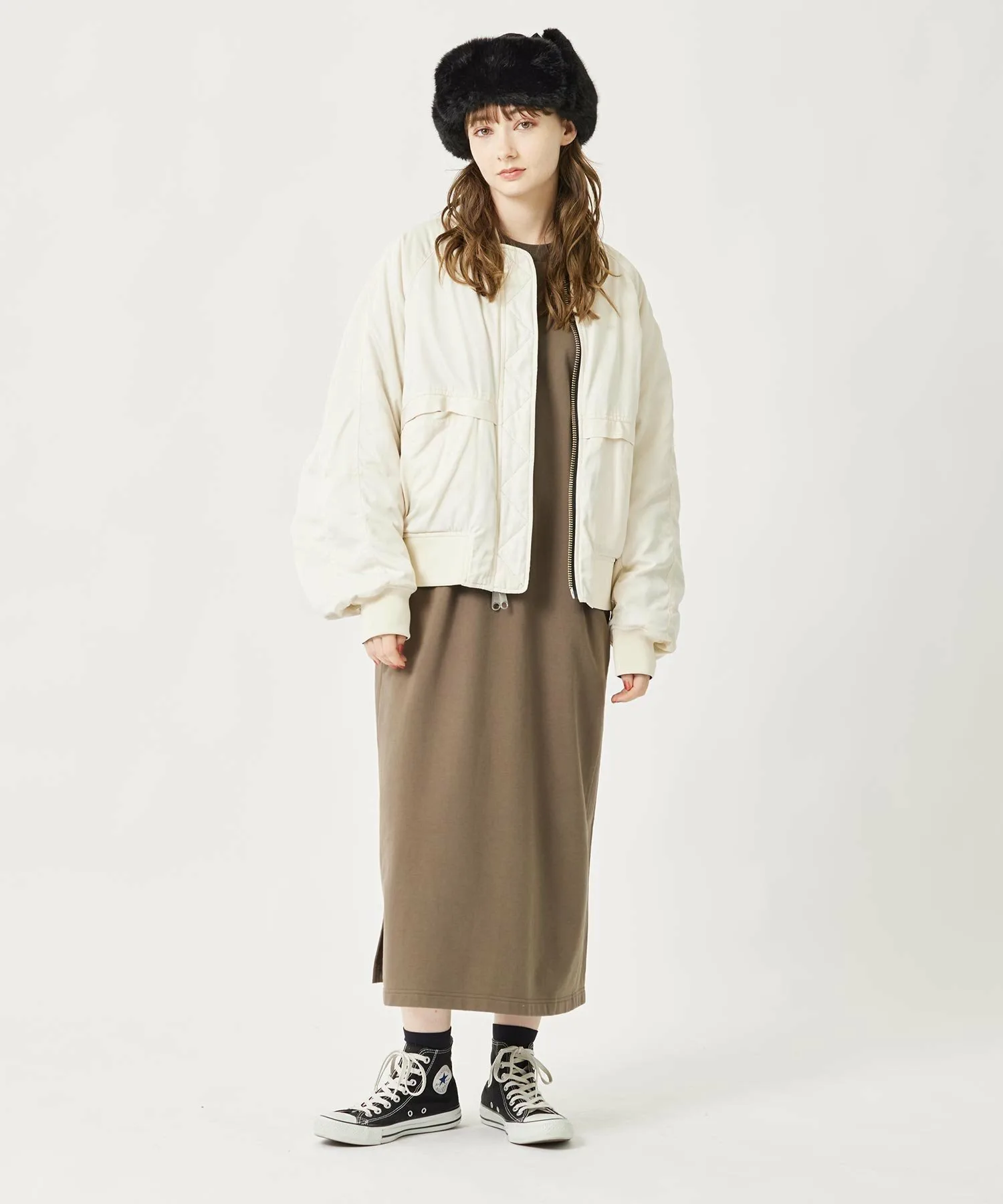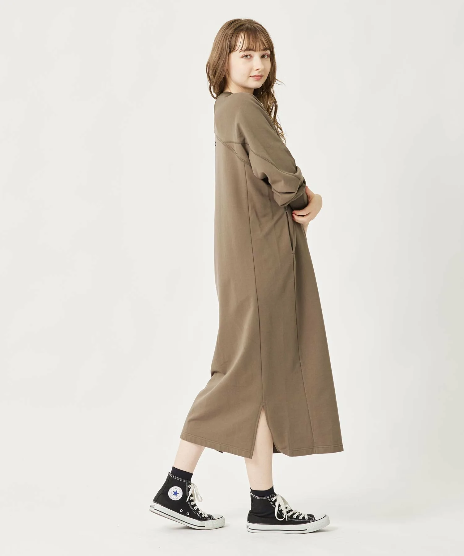 Это платье легко сочетается с любым нарядом, не будучи слишком вычурным, поэтому вы можете менять настроение, меняя верхнюю одежду. ◎ Сочетайте его с длинным пальто для спокойного образа.