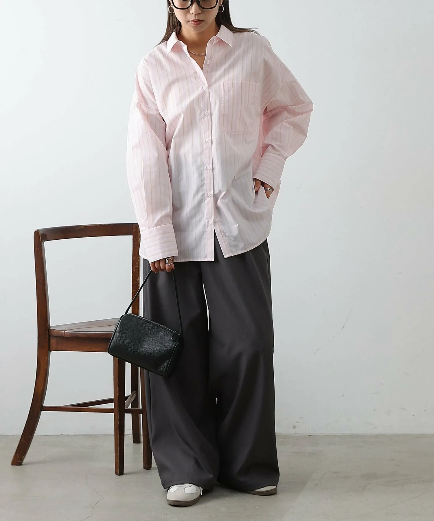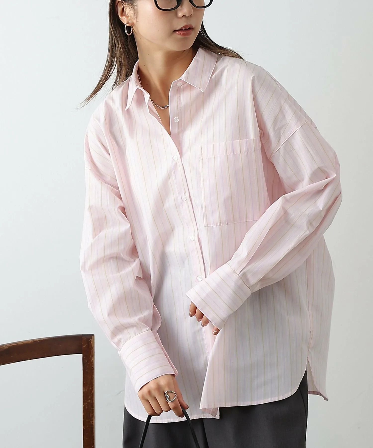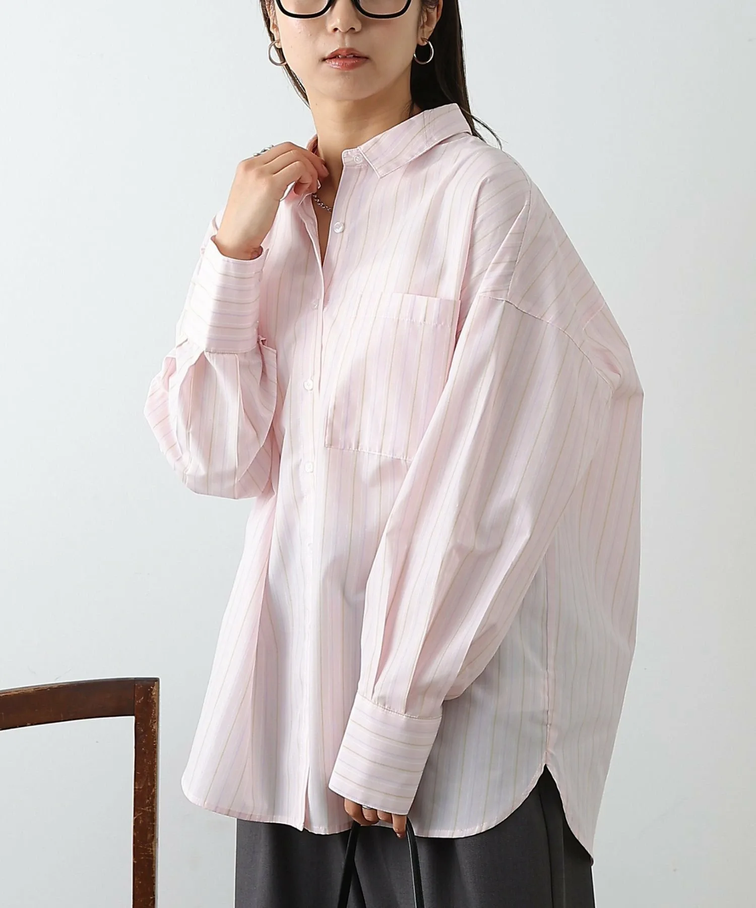 Объёмная рубашка большого размера сама по себе создаёт утончённое впечатление.